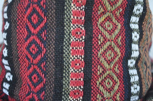 簡単な織り方の説明になりますがメキシコのサラッペみたいなイメージの生地です