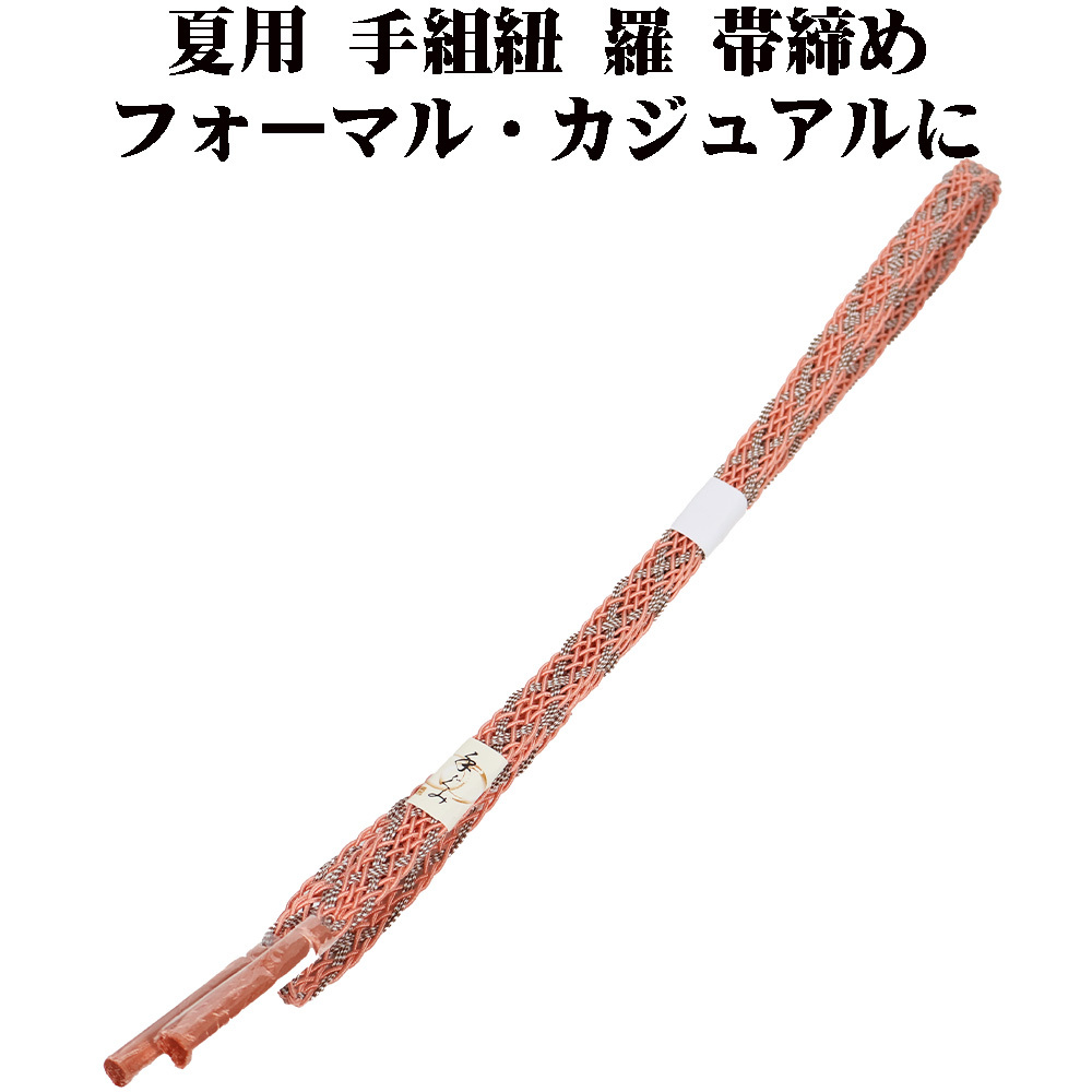| 帯締め | 夏用 手組紐 帯締め 新品 羅 サーモンピンク 白 緑 立涌 |