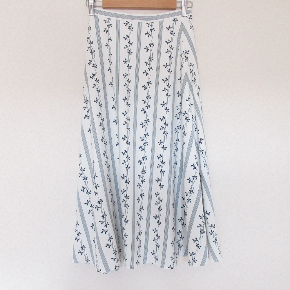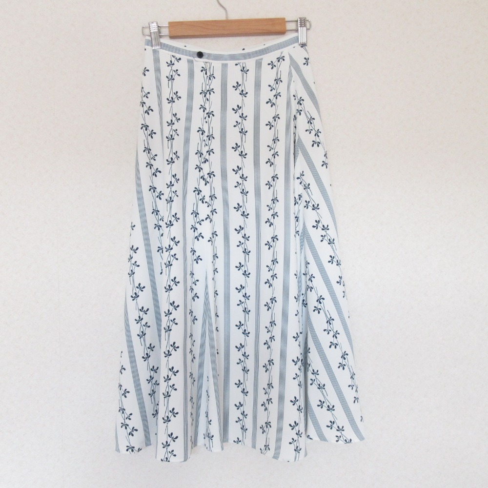 商品名:IENA DEVEAUX sese イエナ ストライプ フラワー フレアスカート 34 ホワイト ブルー