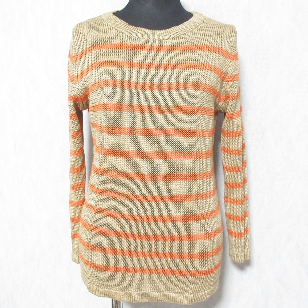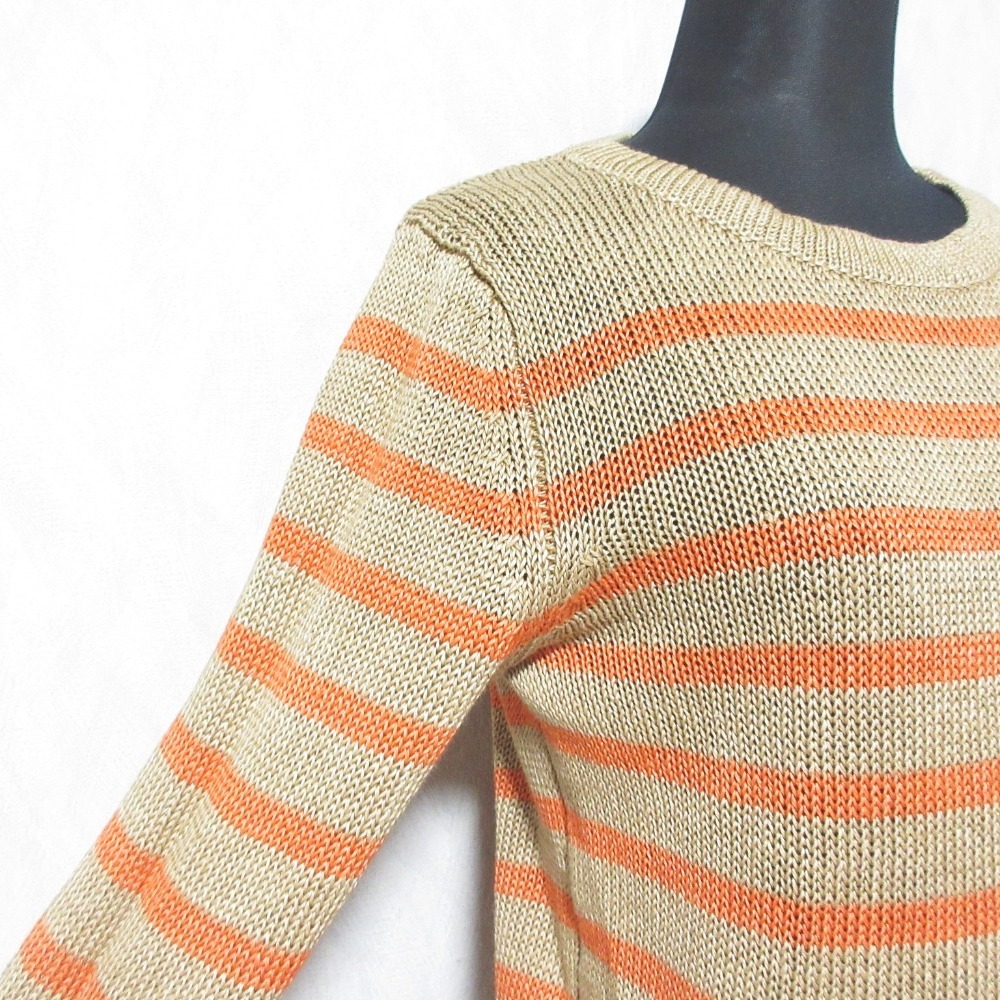 商品名:Ron Herman ロンハーマン リネン ボーダー 長袖 ニットカットソー サイズXS ベージュ オレンジ