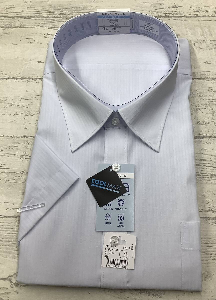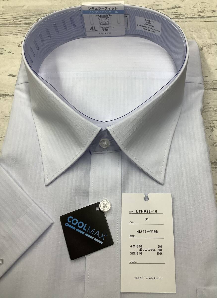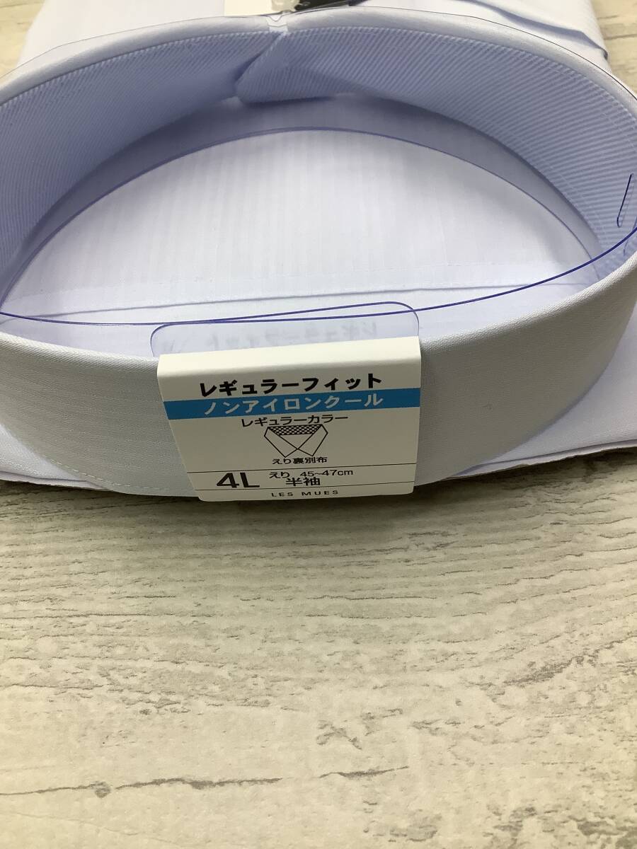 新品未使用★ 47半袖 4Lサイズ ★ノンアイロンワイシャツ ★レギュラーカラー サックスブルーストライプドビー生地★