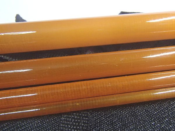輸入物フライ用グラスブランク。6フィート、#2。約32g。先端直径約1.2mm、末端直径約10.1mm。透明なオレンジ。4ピース。スリップオーバーフェルール。仕舞寸法、48.5cm。未使用品ですが、運搬などに伴う微細な擦れや傷はあります。クロスバッグ付。激安ブランク(B品ではない)のため、その他細かい不具合などはご容赦願います。