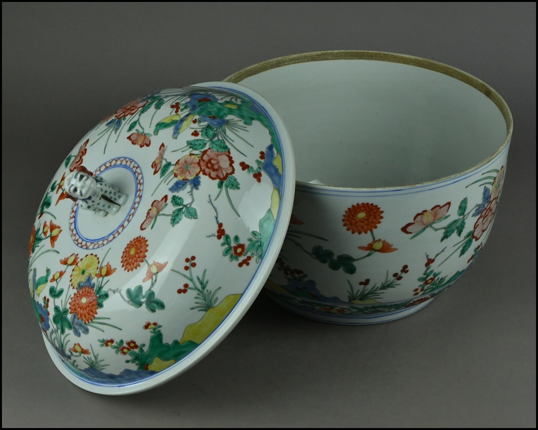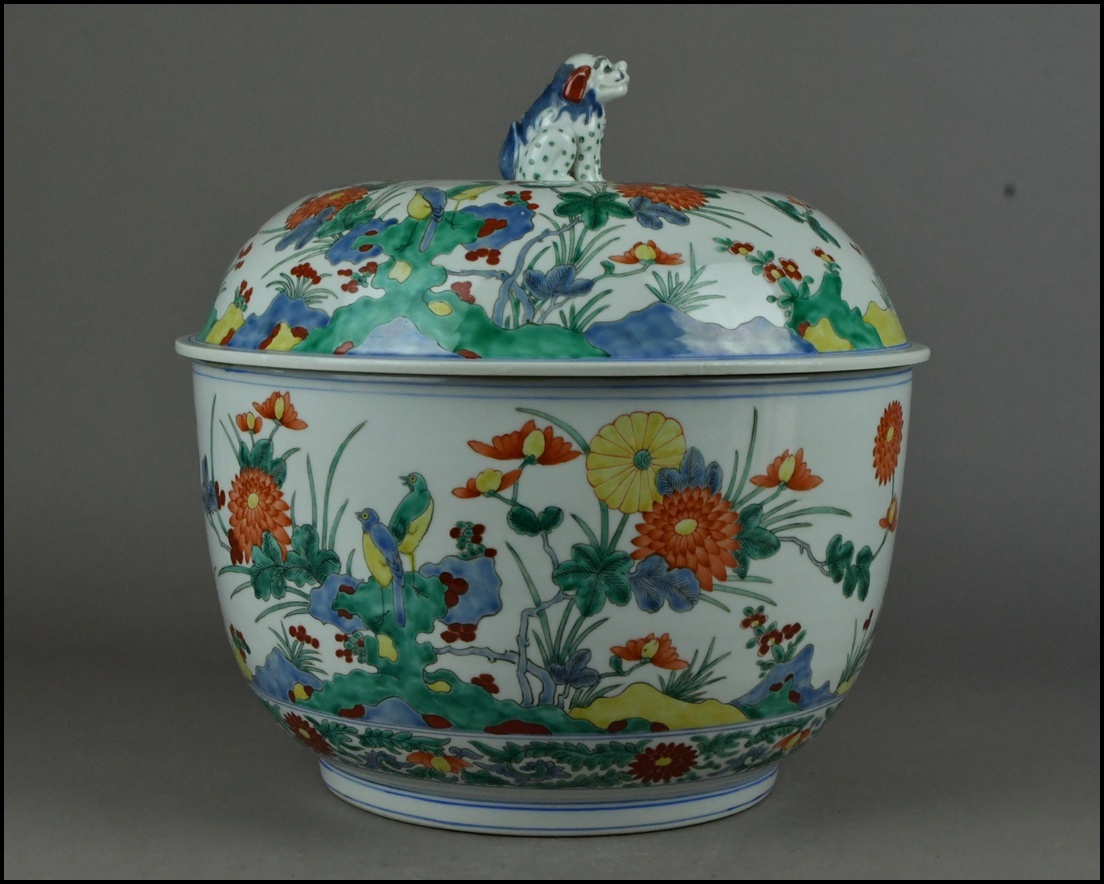 | 《品 名》:江戸時代【酒井田柿右衛門】獅子摘 色絵花鳥図 大蓋物 大鉢 飾壷 古美術品 高さ33cm 《寸 法》:高さ 約 33cm 幅 約 33cm 行 約 33.5cm 《総重量》:ーg 《状 態》:経年や使用による汚れやスレ、小キズなどがございます。 画像をよくご確認ください。 骨董品、アンティークなため掃除などしておりません。ご了承ください。 使われているパソコンのディスプレイの状態により、実物と色合いが若干異なることがあります。 中古品とご理解の上ご入札をお願い致します。 | |||