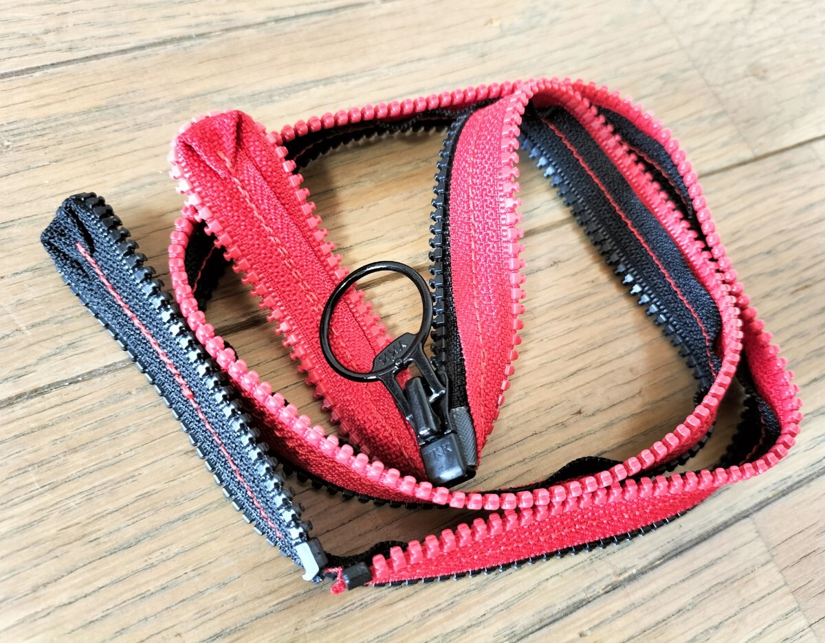引っ張ると、ファスナーが 紐状に 長くなりながら、ホドけ 伸び 広がって OPENされます!