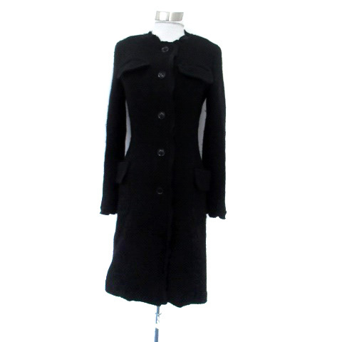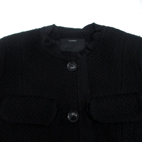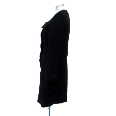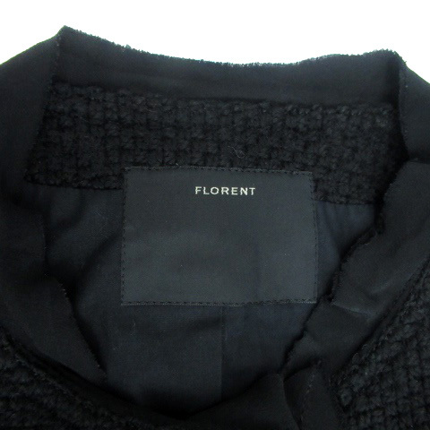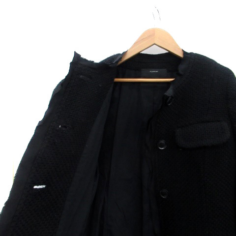 フローレント FLORENT ノーカラーコート ロング丈 フリル 切替 黒 ブラック /HO12 レディース