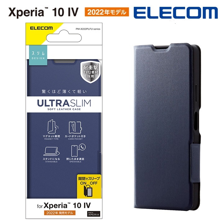 【商品の説明】   エレコム Xperia 10 IV ( SO-52C / SOG07 ) 用 ソフトレザーケース 薄型 磁石付き Xperia10 IV エクスペリア10 4 ソフトレザー ケース カバー 手帳型 UltraSlim 薄型 ネイビー PM-X222PLFUNV