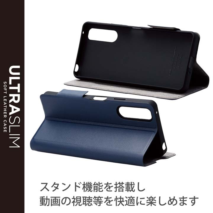 エレコム Xperia 10 IV ( SO-52C / SOG07 ) 用 手帳型 UltraSlim 薄型 ソフトレザーケース 薄型 磁石付き エクスペリア10 Ⅳネイビー