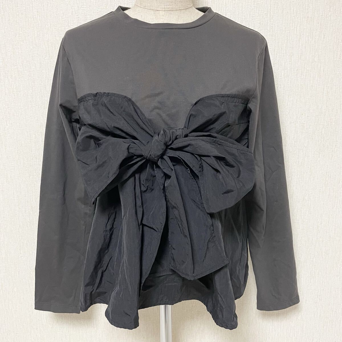 即決☆OPAQUE.CLIP オペーク ドッキング リボン Tシャツ 長袖 ブラック M 美品 38