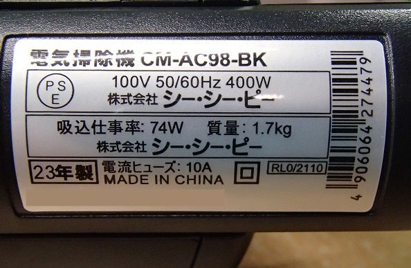美品 CCP コード式 スリムクリーナー CM-AC98-BK 2Way 23年製 シー・シー・ピー 掃除機 SWEEPLUS