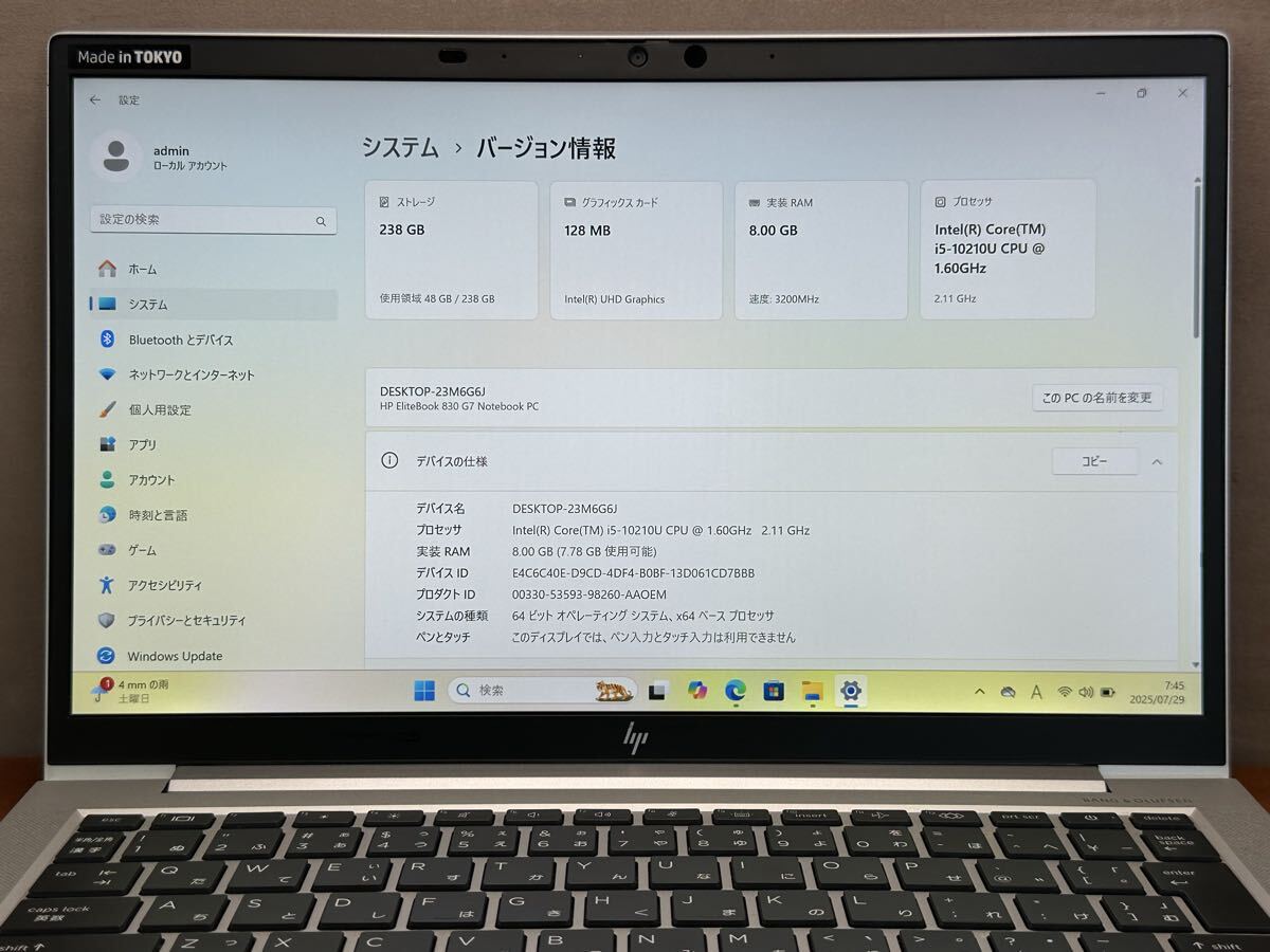 ・CPU: Core i5-10210U 1.6GHz, ターボブースト: 4.2GHz