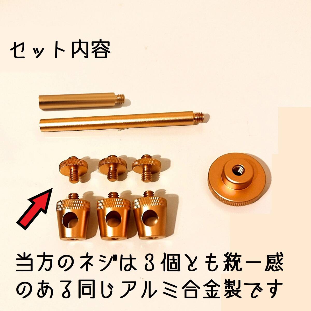 ②ポール 100mm×1③ポール 50mm×1④カメラスタッドボルト×3⑤フックHOOK×3※9点セット