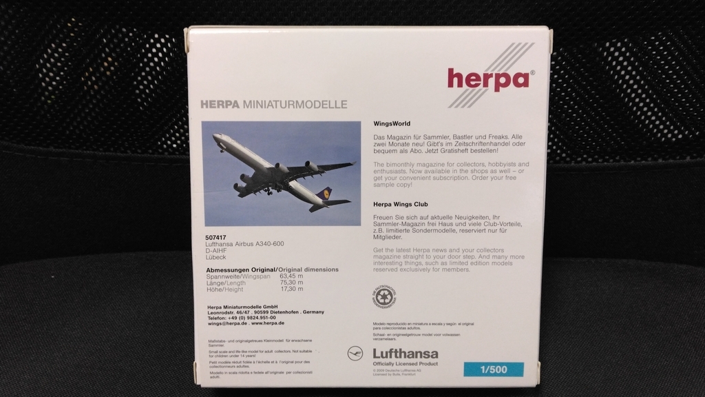 【Herpa】ルフトハンザ Lufthansa Airbus A340-600 1/500