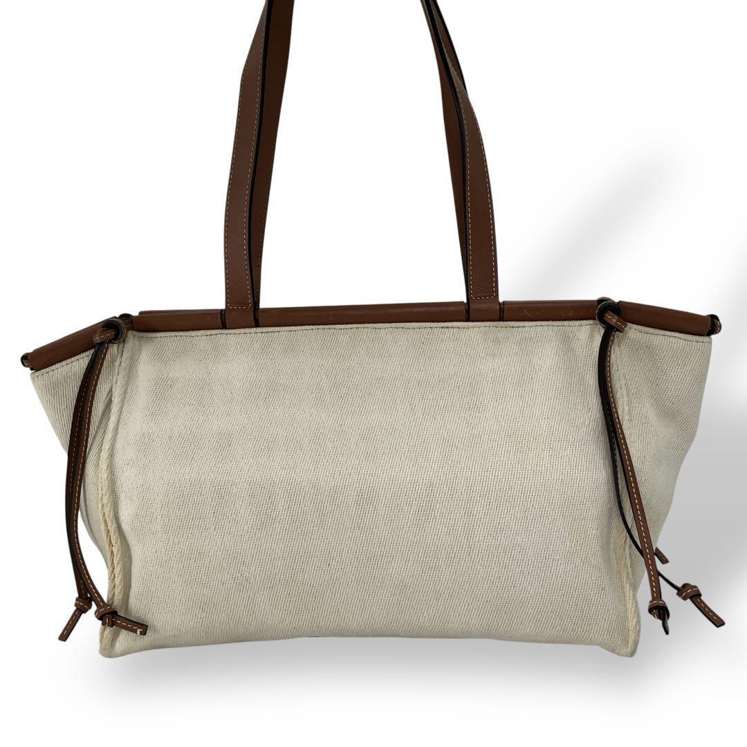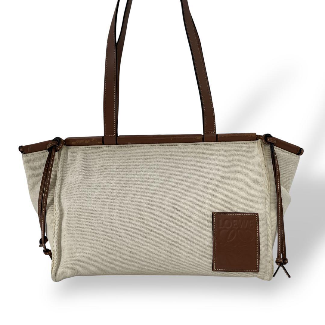 LOEWE トートバッグ 白 ホワイト ブラウン ロゴ型押し マグネット