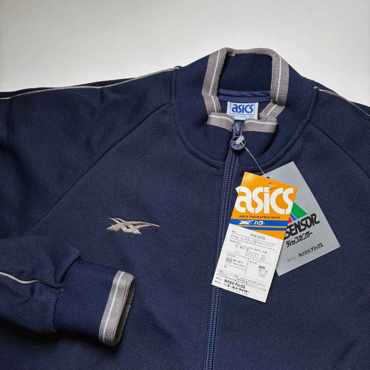 ★レトロ★日本製 asics/アシックス パウ ヤングディップⅡ アスリート シャツ ジャージ上着 150cm ネイビー×グレー★ゴールドタイガー