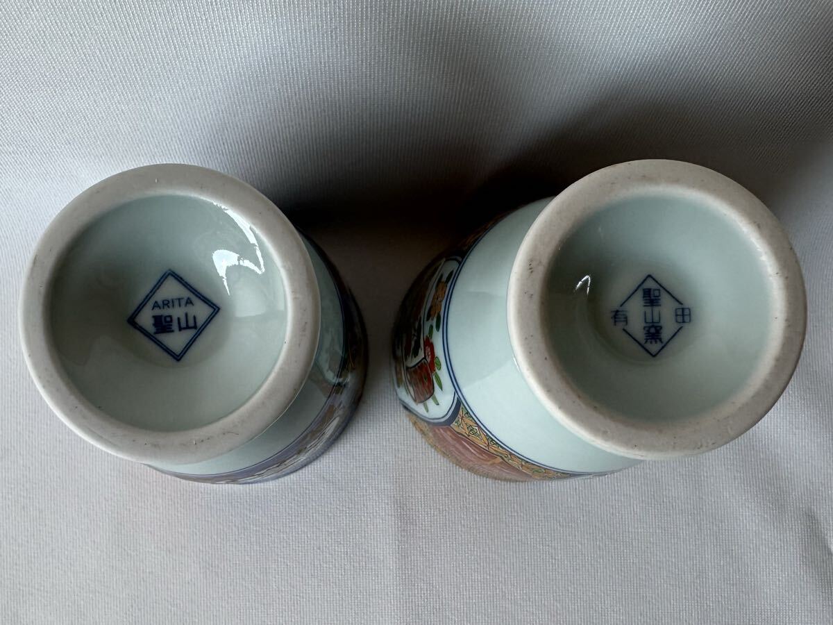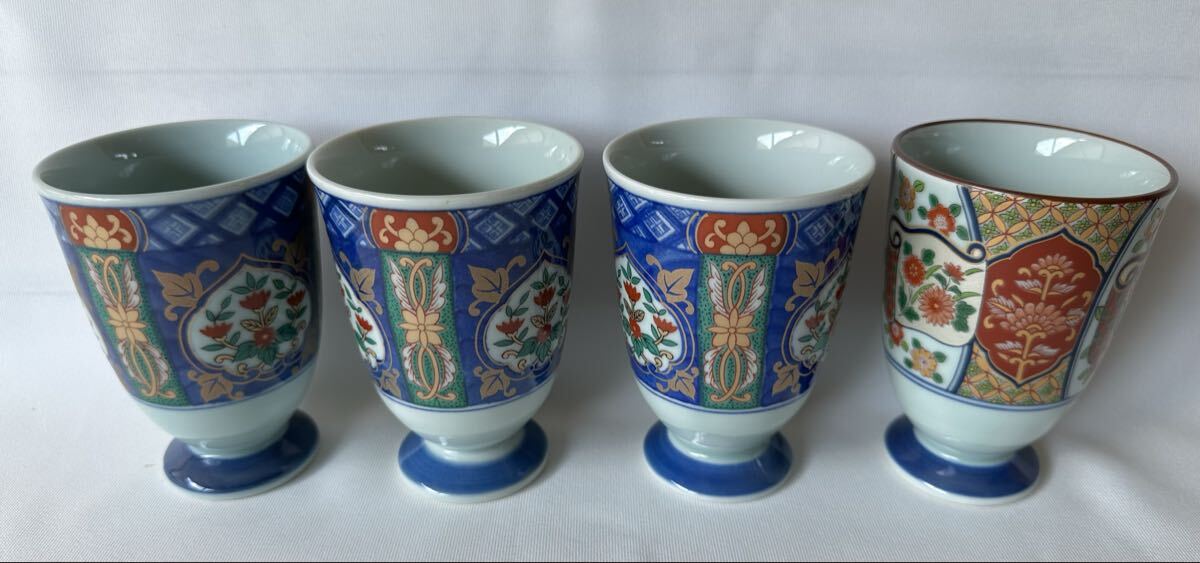 有田焼 聖山窯  湯呑  絵変わり レトロ 4客