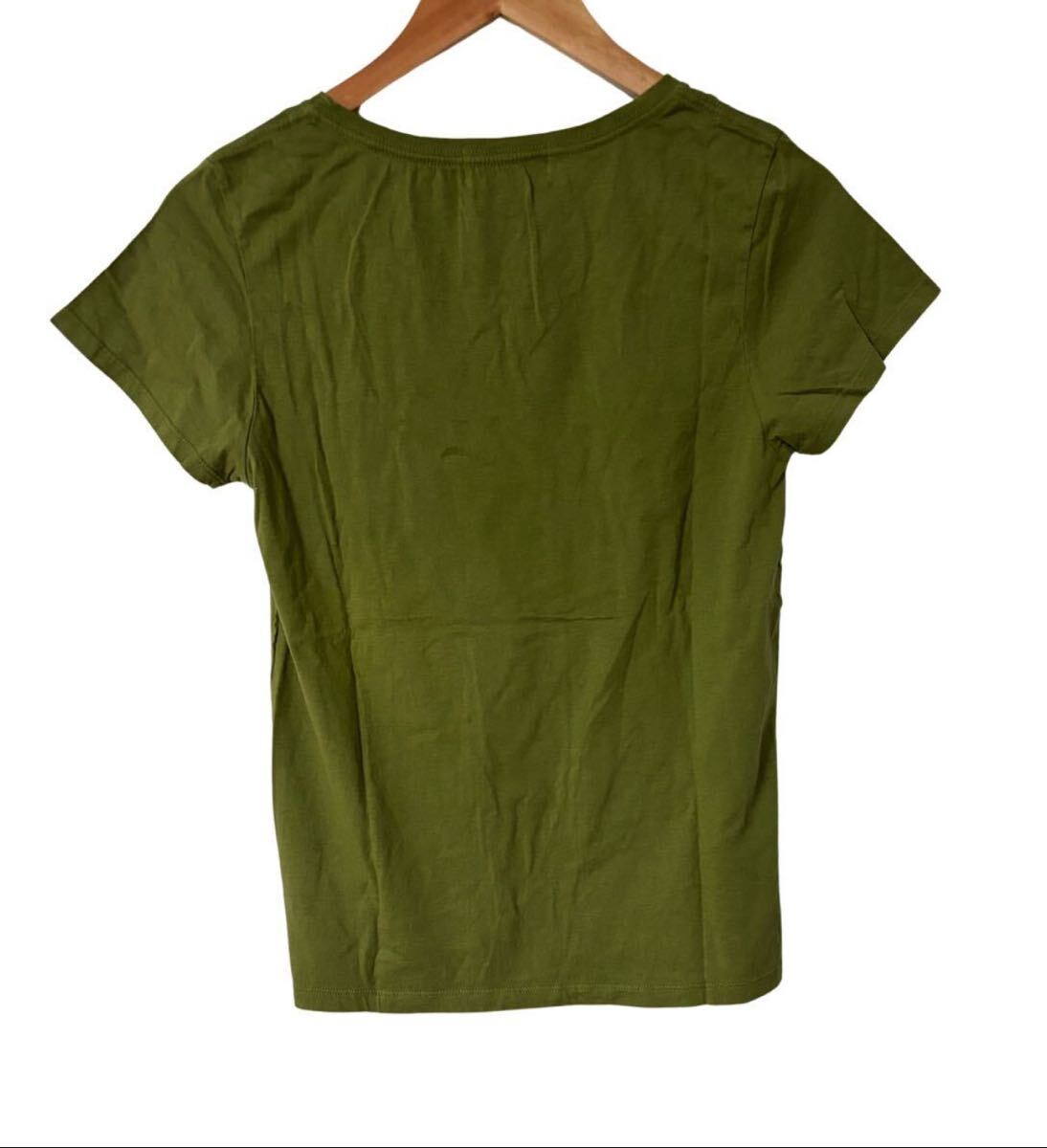 Here’s a rare and quirky T-shirt that stands out with its retro-pop aesthetic: a collaborative piece between Superfly and DALUC. The deep green cotton fabric is the perfect backdrop for the eye-catching graphic of two bold mushrooms accompanied by a psychedelic owl — a design that feels straight out of a 70s rock poster or an old-school record cover.