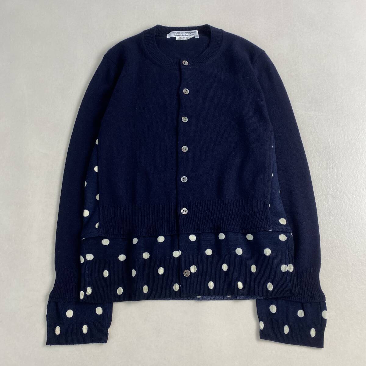 美品 コムデギャルソン カーディガン ドット ドッキング COMME des GARONS ネイビー M・L相当