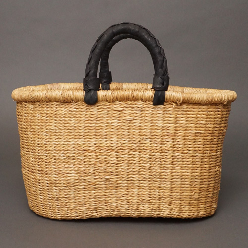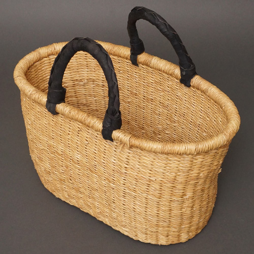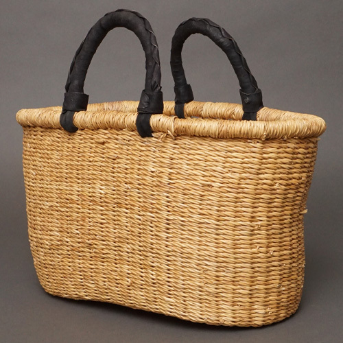 アフリカ ブルキナファソ 楕円  バスケット ブラック 無地 Mサイズ  No.7 かご かごバッグ ボルガバスケット