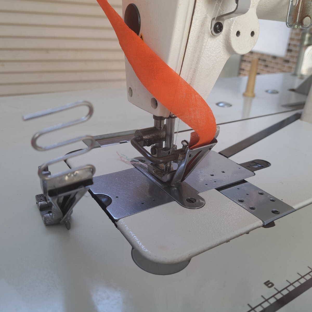 ●縫い画像はポリエステル生地に22-10のテープバインダーを付け22㎜バイヤステープを縫い付けてみました、テープ仕上がり10㎜、針間は8㎜で綺麗に仕上がりました。(バインダーは別に24-12サイズが付属致します)、針はTVx7 14番、糸は60番スパン上下共、での縫い画像に成ります、縫い目も大変綺麗です。