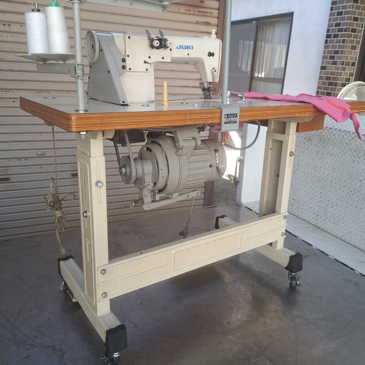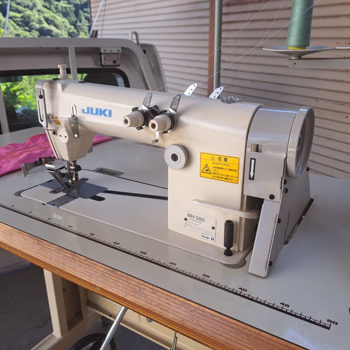 ●工業用ミシン、ジューキ、JUKI 平2本針二重環縫いミシンMH-380、針巾8㎜!整備済品、作動良好、電源100V!で御座います。