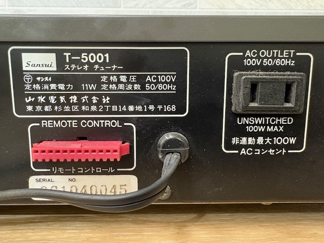 K9086◆ SANSUI T-5001 サンスイ ステレオ オート チューナー FM AM 通電確認済 音響機器 オーディオ機器 山水電気株式会社