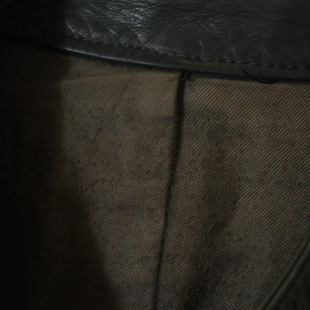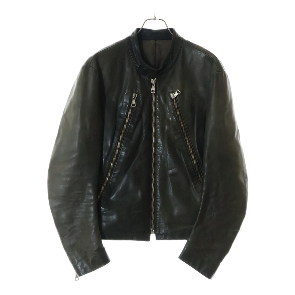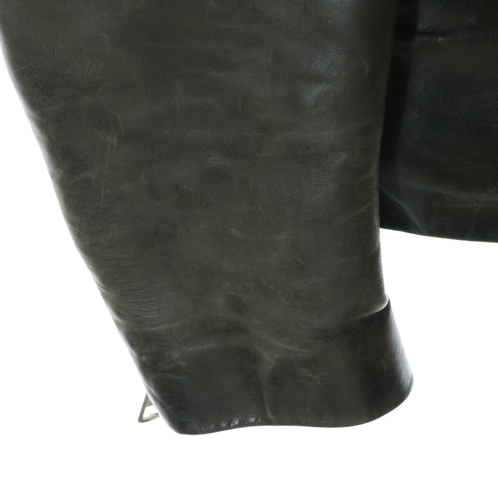 品名01AW Archive 本人期 ダメージ加工 ビニールタグ 八の字 レザーライダースジャケット ダークグリーン