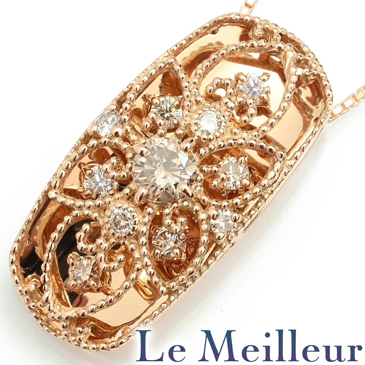 デイリー 普段使い タイムレス キラキラ エレガント 華やか フェミニン パーティー セレモニー Flower 4月 誕生石 ベネチアンチェーン 引き輪 ダイア ラウンドブリリアントカット 18金 PG 20代 30代 40代 50代 60代 70代 USED ユーズド 中古 リユース ネックレス LEM6753