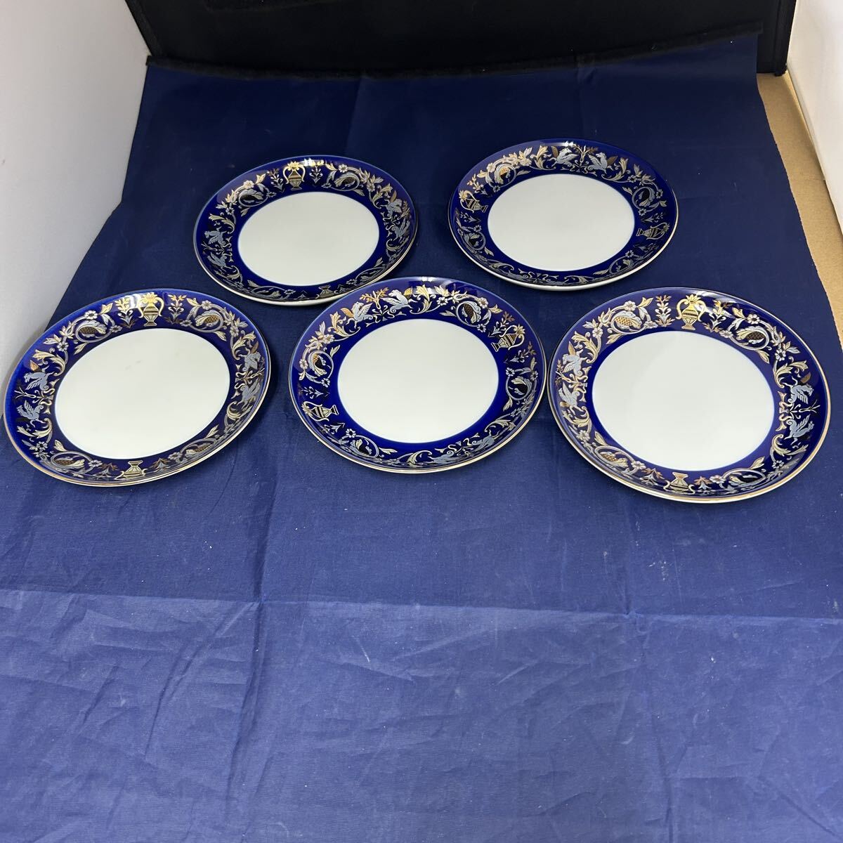 コレクターズSHOPです。木曜日はお休みさせて頂きます。同日終了のみ同梱可能です。送料は下に書いてあります | 未使用品 三洋陶器 CITY COLLECTION シティーコレクション 5枚セット 5客 銘々皿 ケーキ皿 デザート皿 洋皿 金彩 紺色 直径約15cm です。コレクション整理のため出品します。