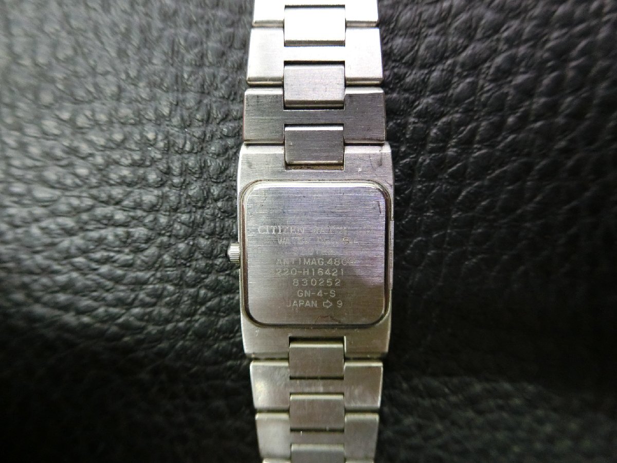 | 商品説明・コメント | シチズン CITIZENの腕時計です。 型番は4220-H16421 Yとなります。 駆動方式はクォーツになりますが現在では動いておりません。 しかしながら電池交換をして動く保証は出来ません。 サイズは竜頭含まずの横幅が18.1mm、ラグからラグ迄の縦の幅が22mm、厚みが4.85mm程度で御座います。 素人計測になりますので御参考迄にして下さい。 今となっては先ず手に入りませんし中々市場に出回る事が有りません。 状態は年式相応では御座いますがベースとしてや部品取り等に使って頂いても良いでしょうし年式相応でそのまま使っても良いかもしれません。 当時物のビンテージに理解の有る方にお勧め致します。 あくまでも部品取りやオーバーホール前提として下さい。 商品の適合や仕様の詳しくは御自身でお調べ頂きます様にお願い致します。 古い物になりますので経年の修理で非オリジナルの部品が使われている事も御座いますので全てに於いてオリジナルを保証する物では御座いません。 写真では御確認頂けない不具合等もある前提で原則ジャンク扱いにて御考慮下さい。 上記の通り、原則瑕疵担保責任はお受け致しませんので御了承下さいます様御願い致します。 上記の条件を御理解頂けない方の入札はお断り致します。 商品状態 | E | 注意事項 | ■ご質問がありましたらQ&A若しくはメール迄宜しくお願い致します。 | ■原則、中古ジャンク扱いの認識を頂ける方・極端に神経質で無い方・身勝手で無い方での御入札お願い致します。 ■例外なく汚れ、割れ、劣化、社外品による補修、油脂類切れ、折れ、腐食、破損、欠損、欠品、色褪せ、錆、機能的な欠陥は有るだろう前提でジャンク扱いでオーバーホールベースのノークレーム、ノーリターンでの取引条件とさせて頂きます。 ■入札の際は、商品説明・内容・写真を良く御確認の上、自己責任に於いて御入札下さい。 ■画像の色は写真の撮影状況により現物と異なる場合が御在います。 その旨を了承戴ける方のみの御入札をお待ち致します。 ■オークション終了から3日以内の御連絡頂けない場合は落札者都合にてキャンセルとさせて頂きます。 その際、yahooより自動的に『非常に悪い』の評価が付きますので御了承下さいませ。 ■商品の発送は入金確認後、4~7日のお時間を頂きます。 ■オークション終了から1週間以内の御入金でお願い致します。 ■新規のID方の悪戯入札防止の為、評価の無い新規の方・評価に著しく不安が在る方の御入札はお断り致します。 新規IDの方でどうしても入札したい方は質問欄より購入の意思を示して頂いた上で御入札下さい。 購入の意思を示さず入札頂きました場合は入札取り消しをさせて頂き今後、弊社商品への閲覧・入札は御断り致します。 ■Seller will not ship internationally. |