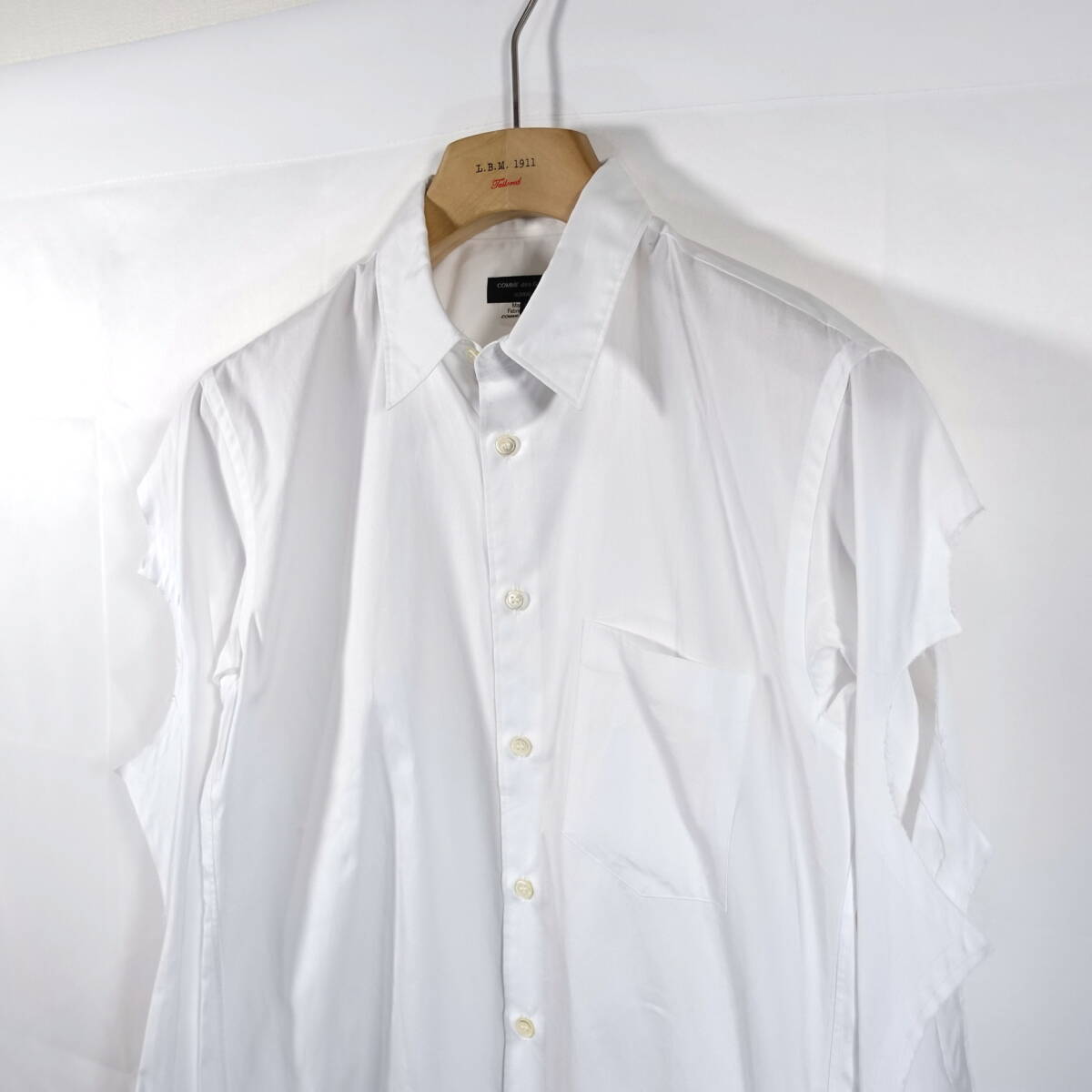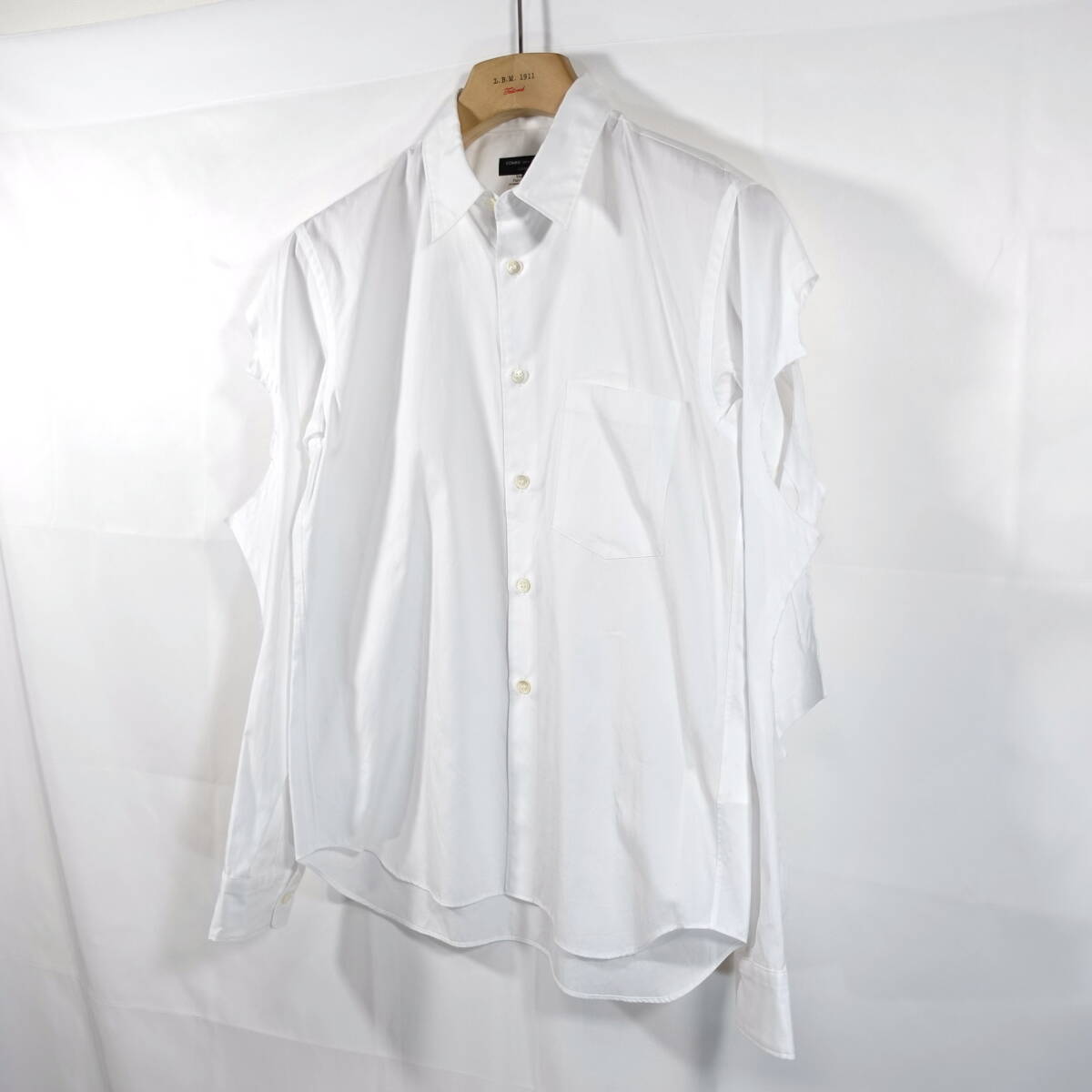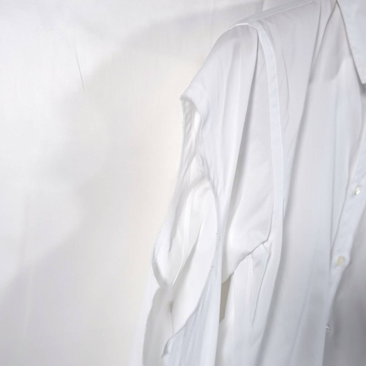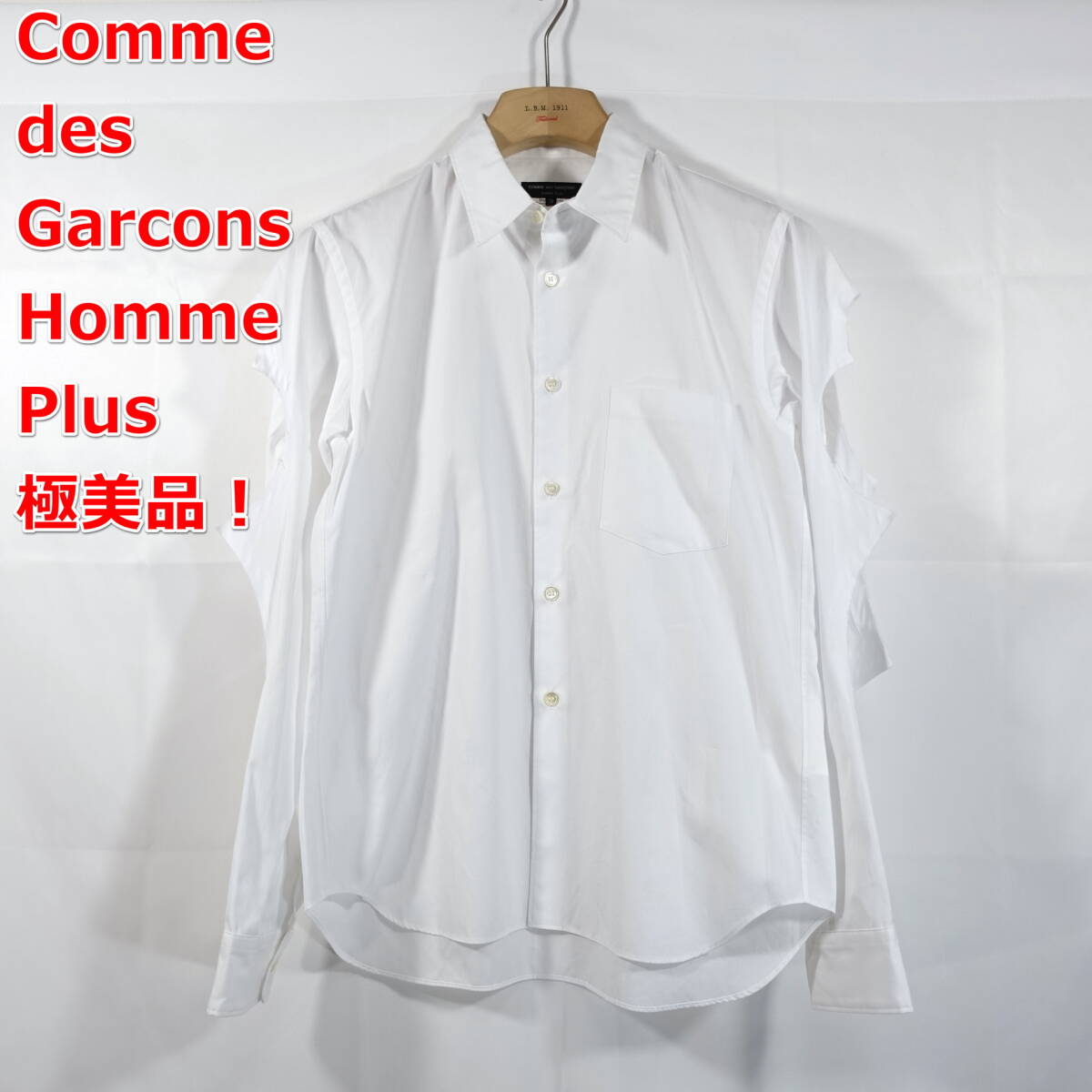 【極美品】コムデギャルソンオムプリュス 袖ダメージ加工シャツ COMME des GARCONS Homme Plus サイズXS 白