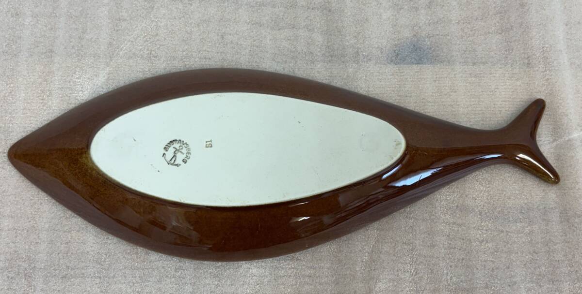 | M1249/グスタフスベリ Gustavsberg Fiskfat お魚プレート 30㎝ 茶色/スティグリンドベリ プレート スウェーデン 北欧食器 |