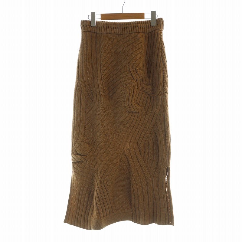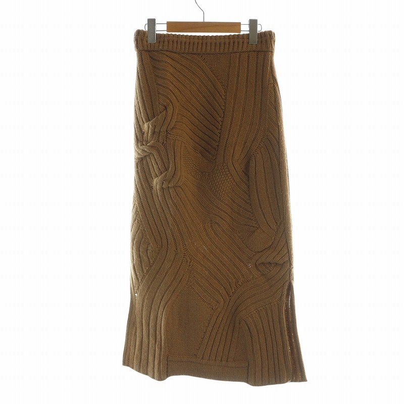 マメクロゴウチ Mame Kurogouchi 23FW Basket Motif Cable Stitch Knitted Skirt ニットスカート ロング ロゴ スリット 1 茶