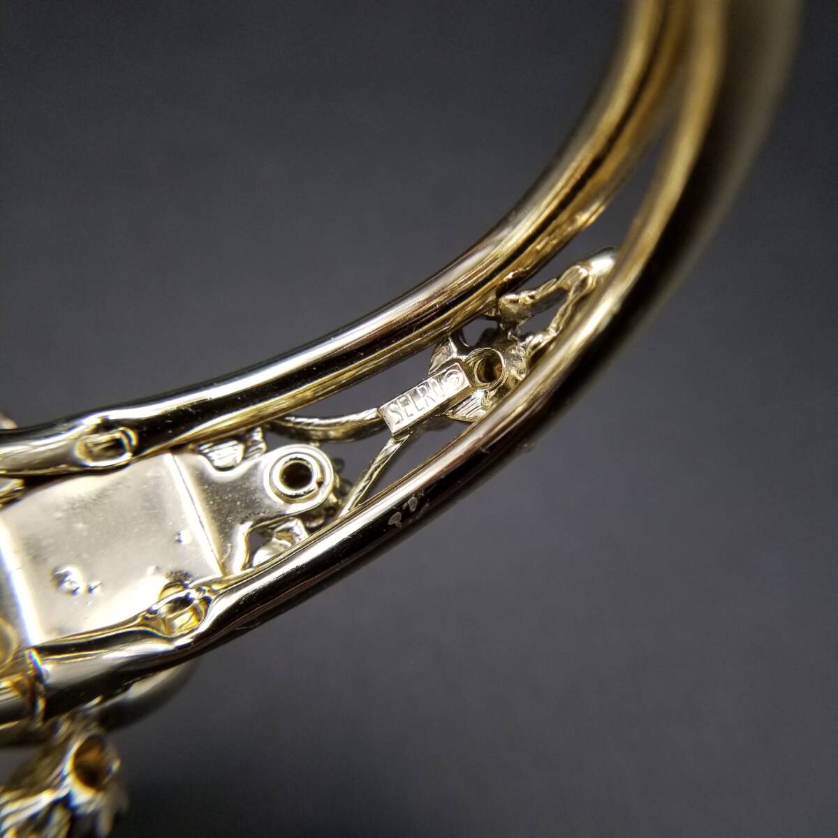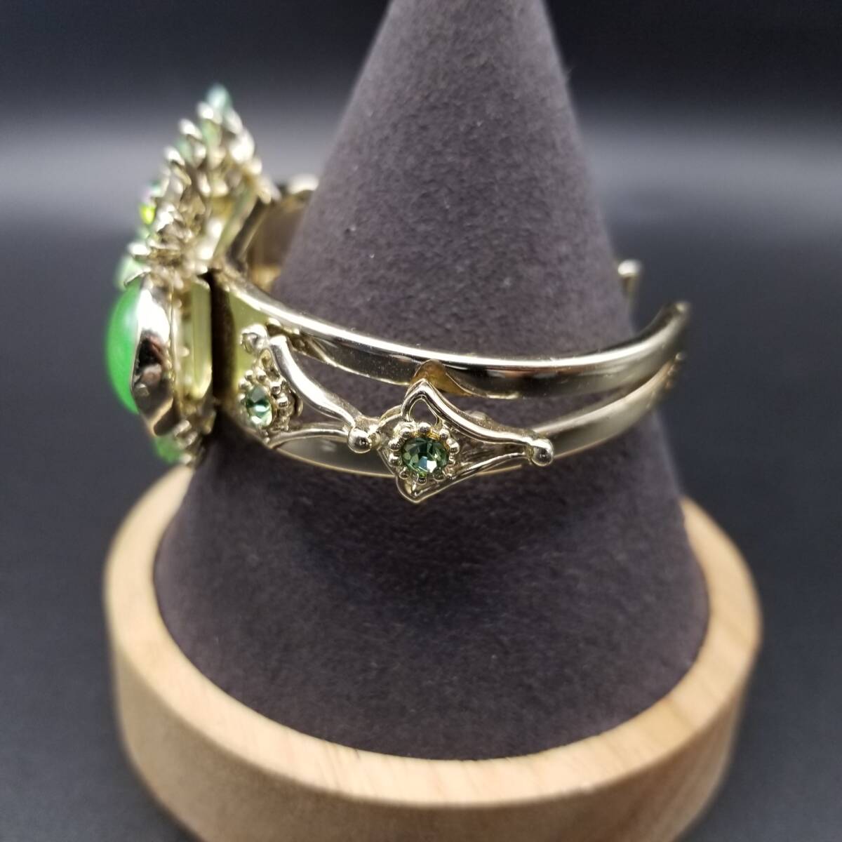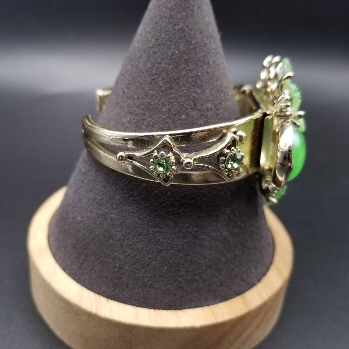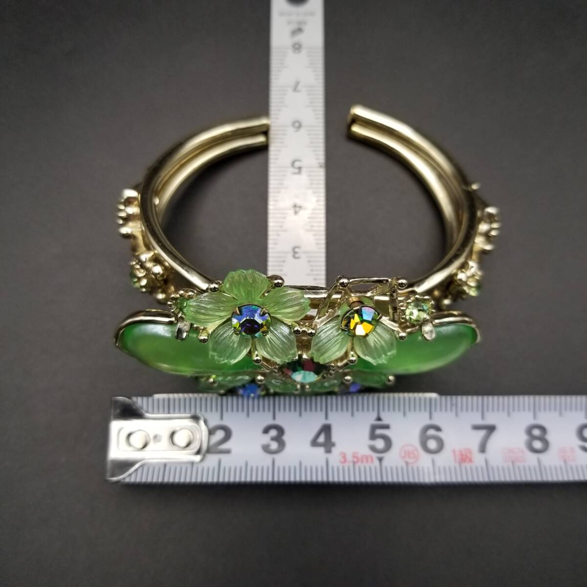 50's Selro 鮮やかな黄緑の花 大ぶり ルーサイト ヴィンテージ カフ ブレスレット 華やか フェミニン ボタニカル セルロ・セリーニ R16-O