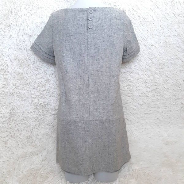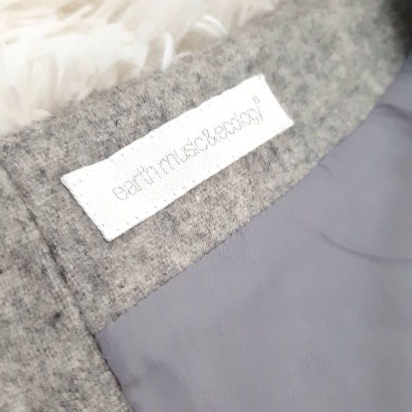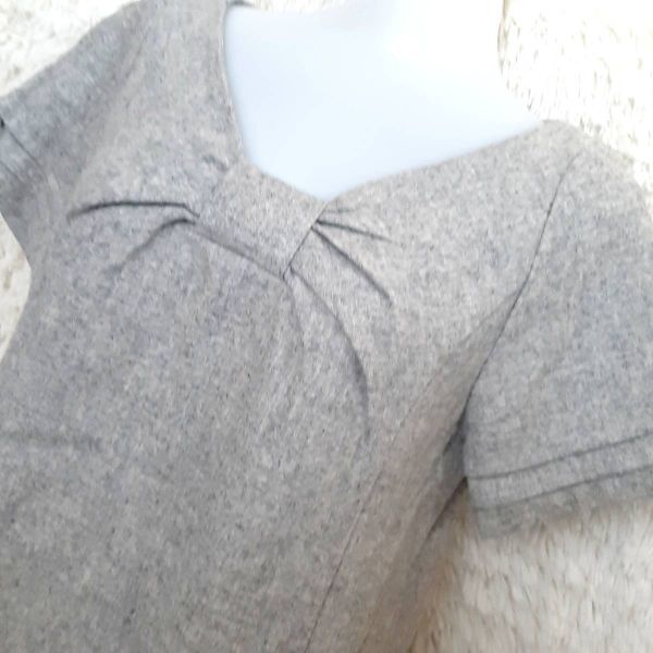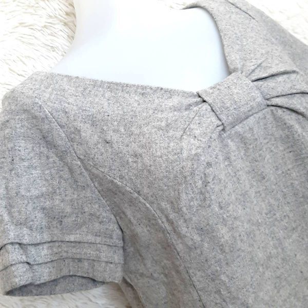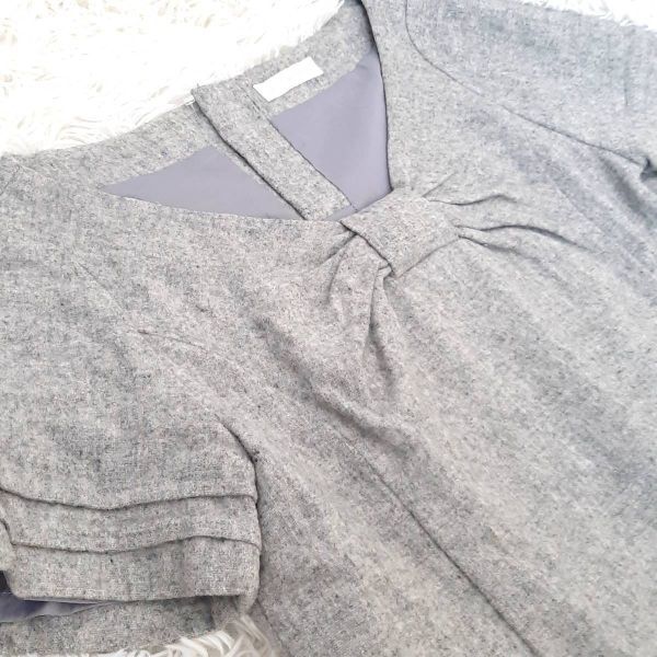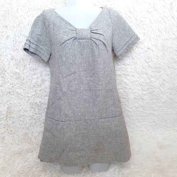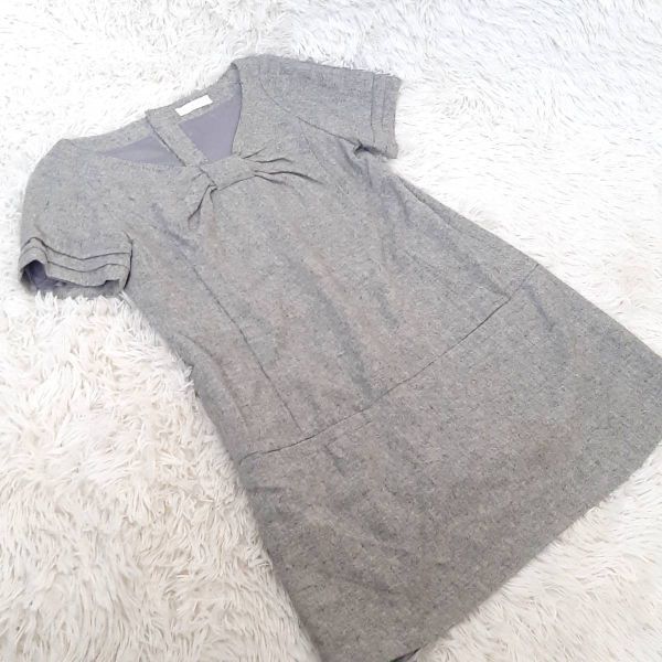 アースミュージック&エコロジー ウール 胸元リボンデザイン  ワンピース グレー
