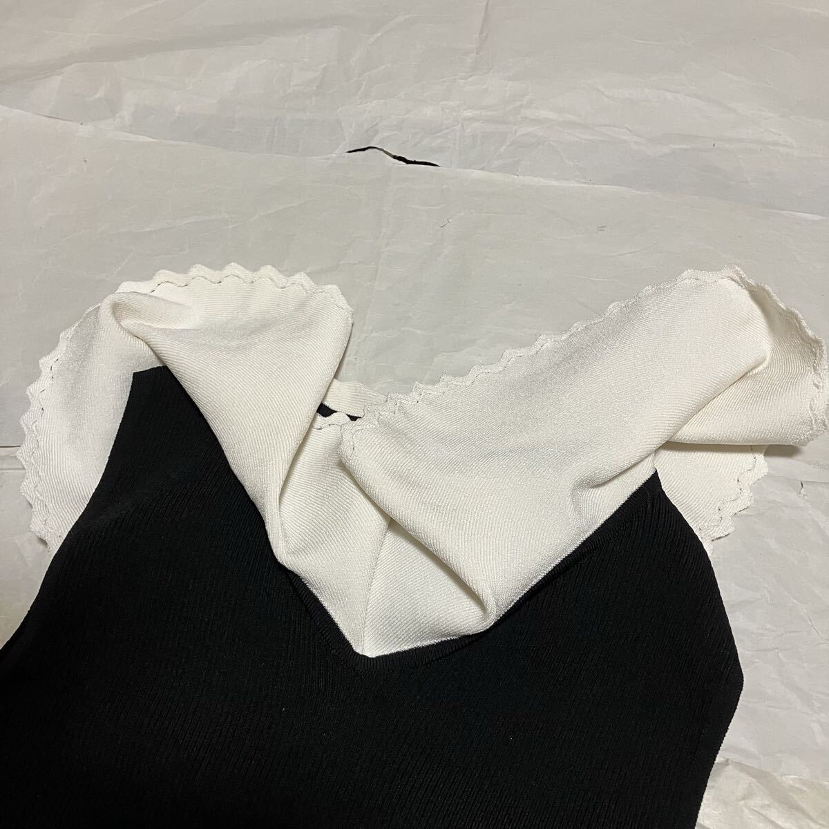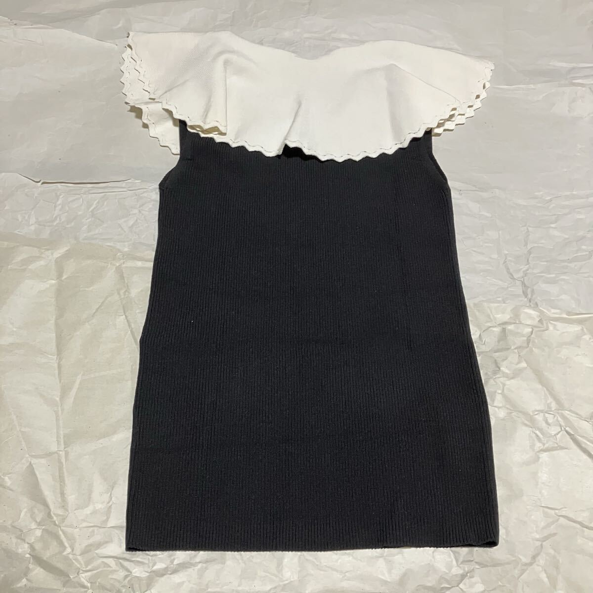 #フリル #ニット #プルオーバー #トップス #ノースリーブ #セーター #袖なし #無地