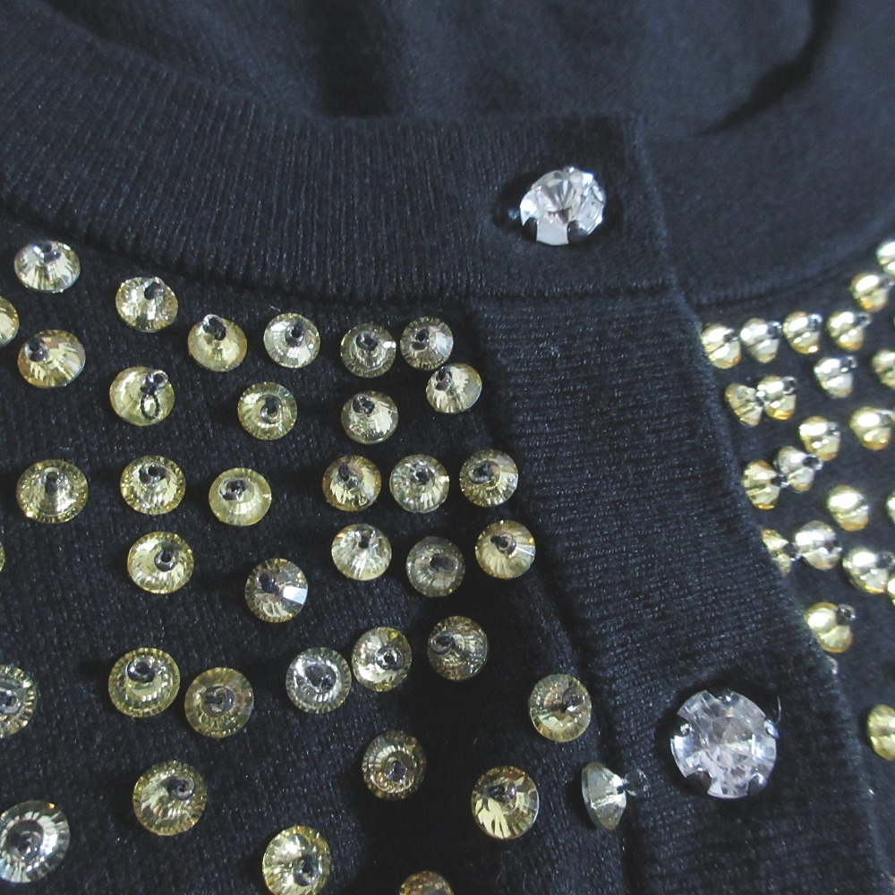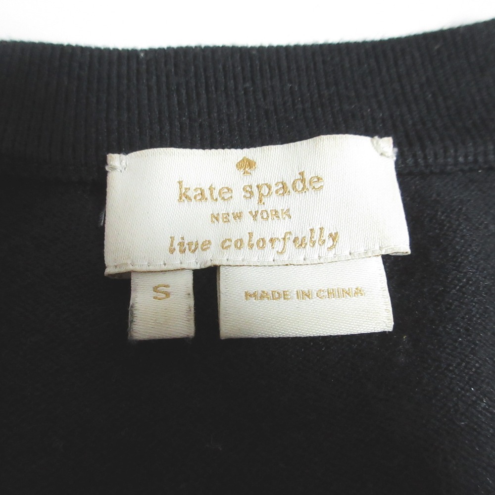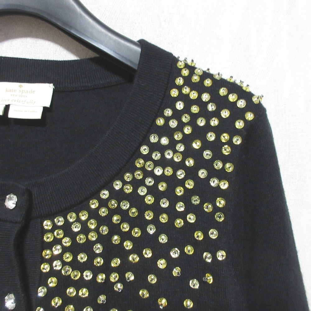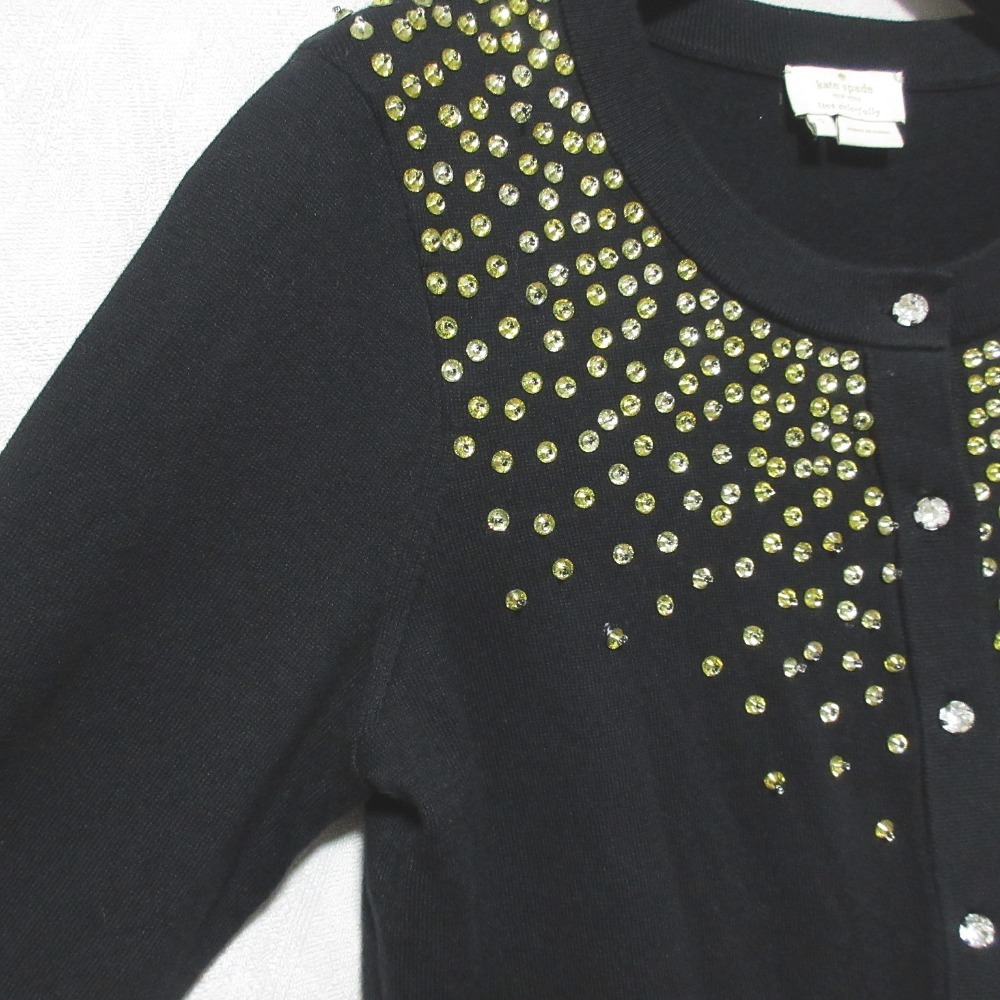 美品 kate spade new york ケイトスペード ビジュー装飾 クルーネックカーディガン 024-273005 サイズS ブラック
