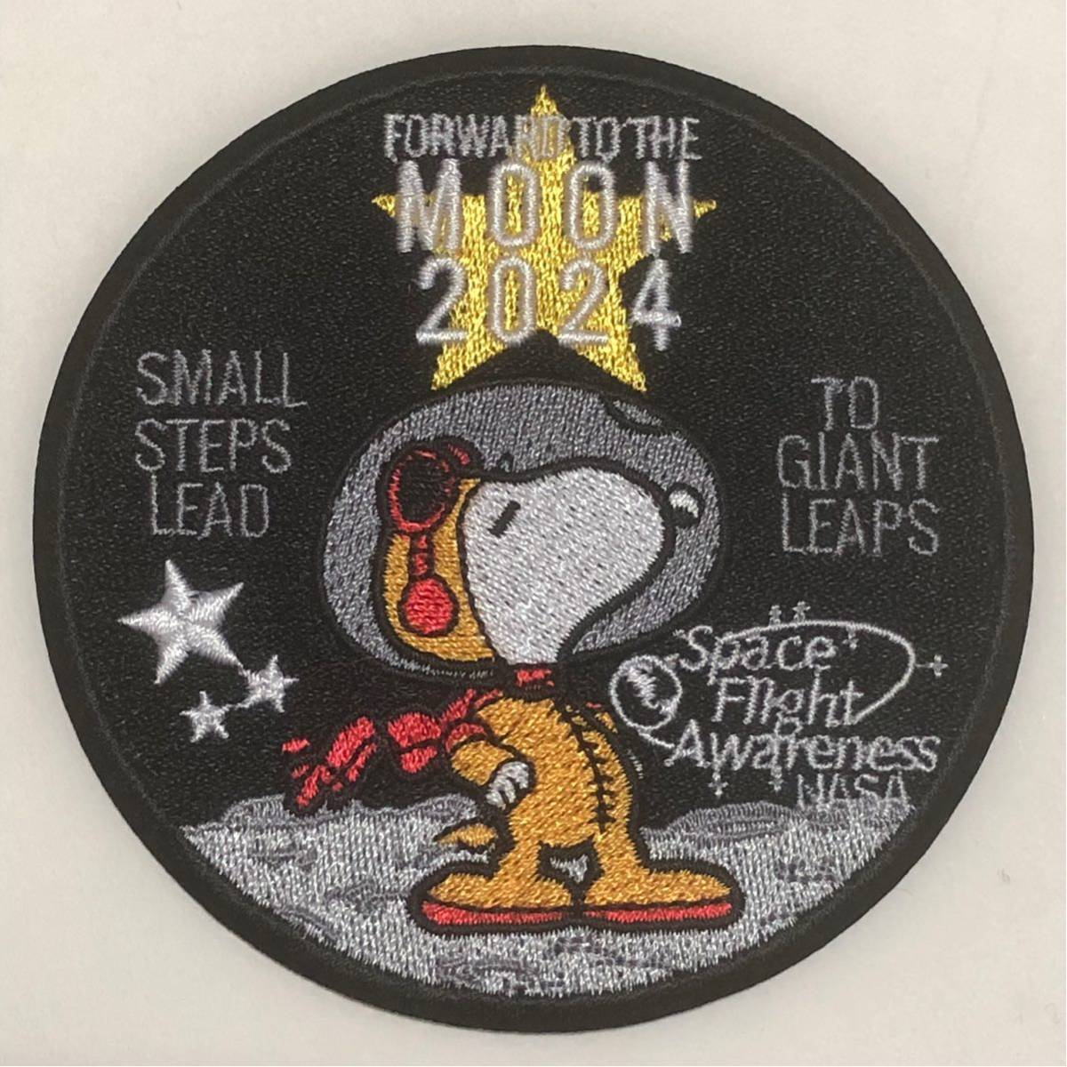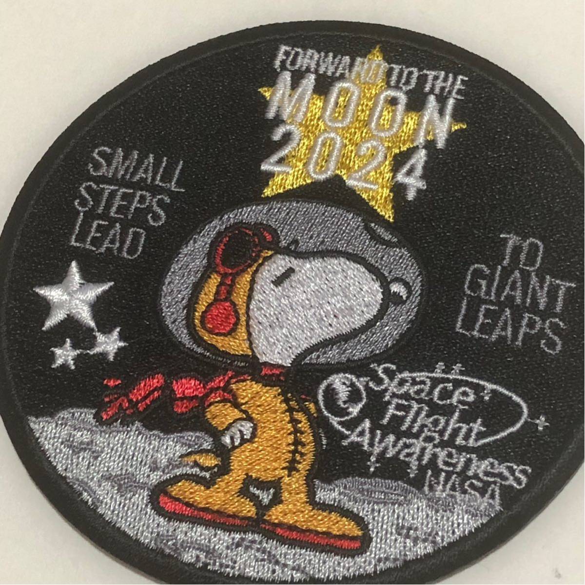 スヌーピー ムーン 2024 NASA 黒のアイロンパッチ です。