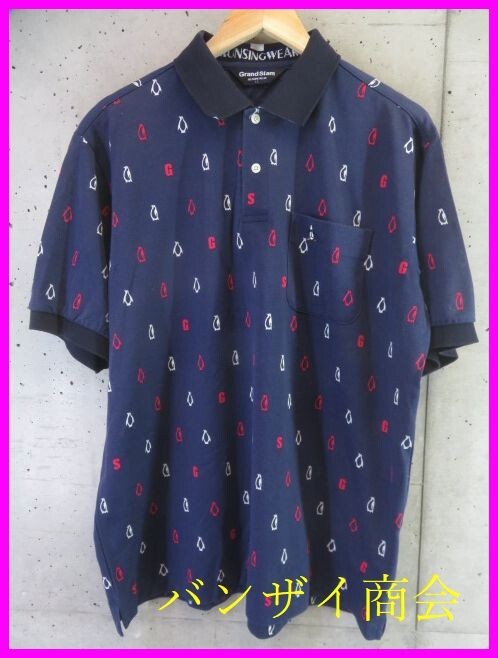 【送料300円可】8270b1◆日本製◆吸汗速乾◆MUNSINGWEAR マンシング 総柄 半袖ドライポロシャツ LL/ゴルフジャケット/ニット/ベスト/パンツ
