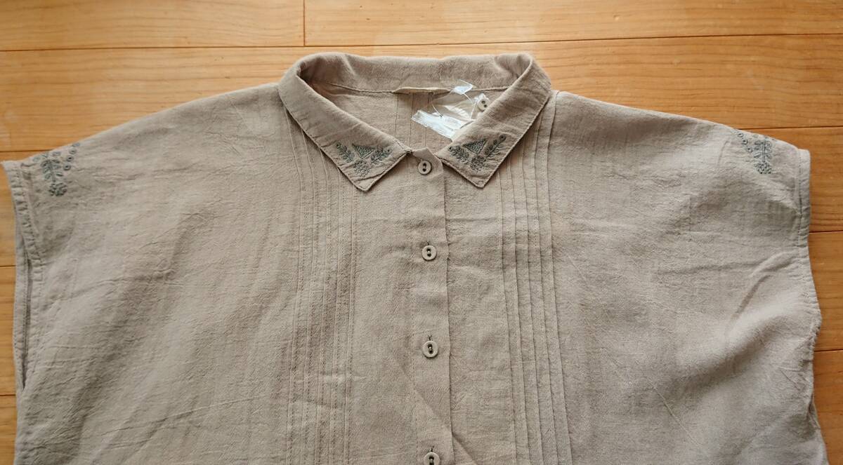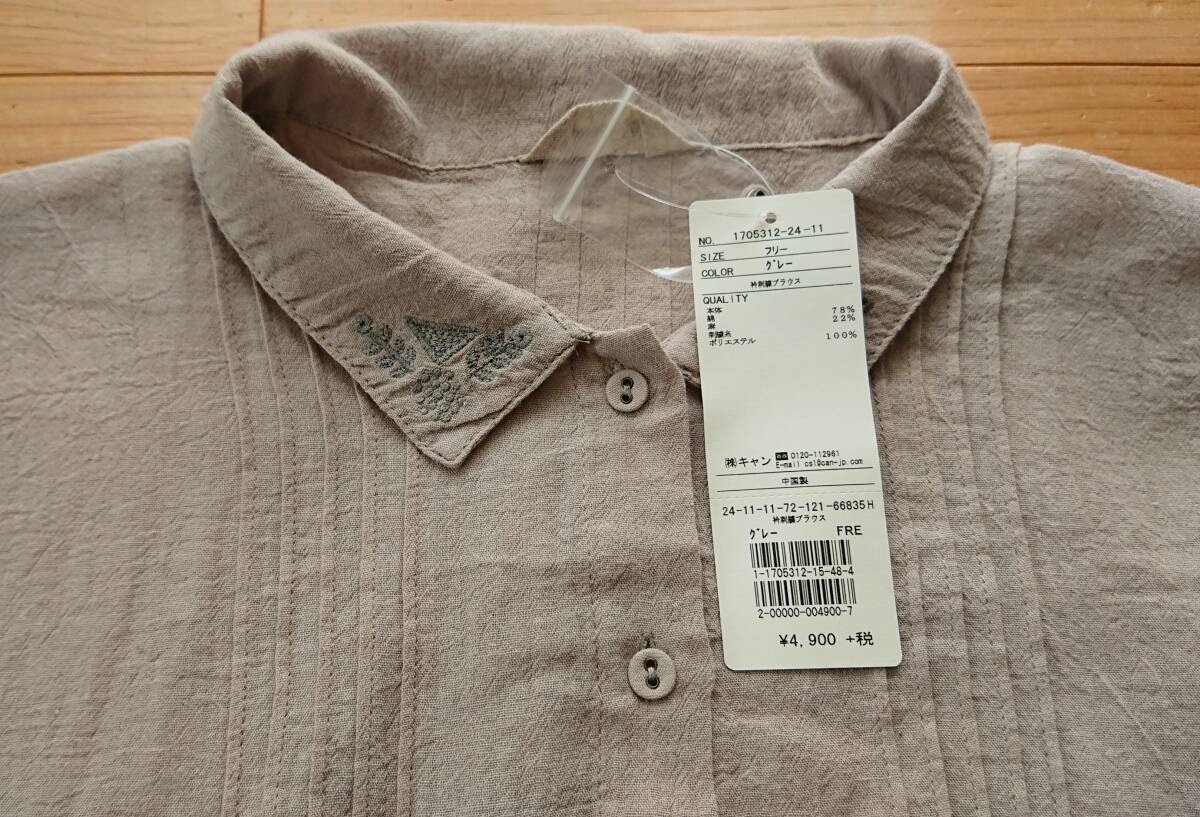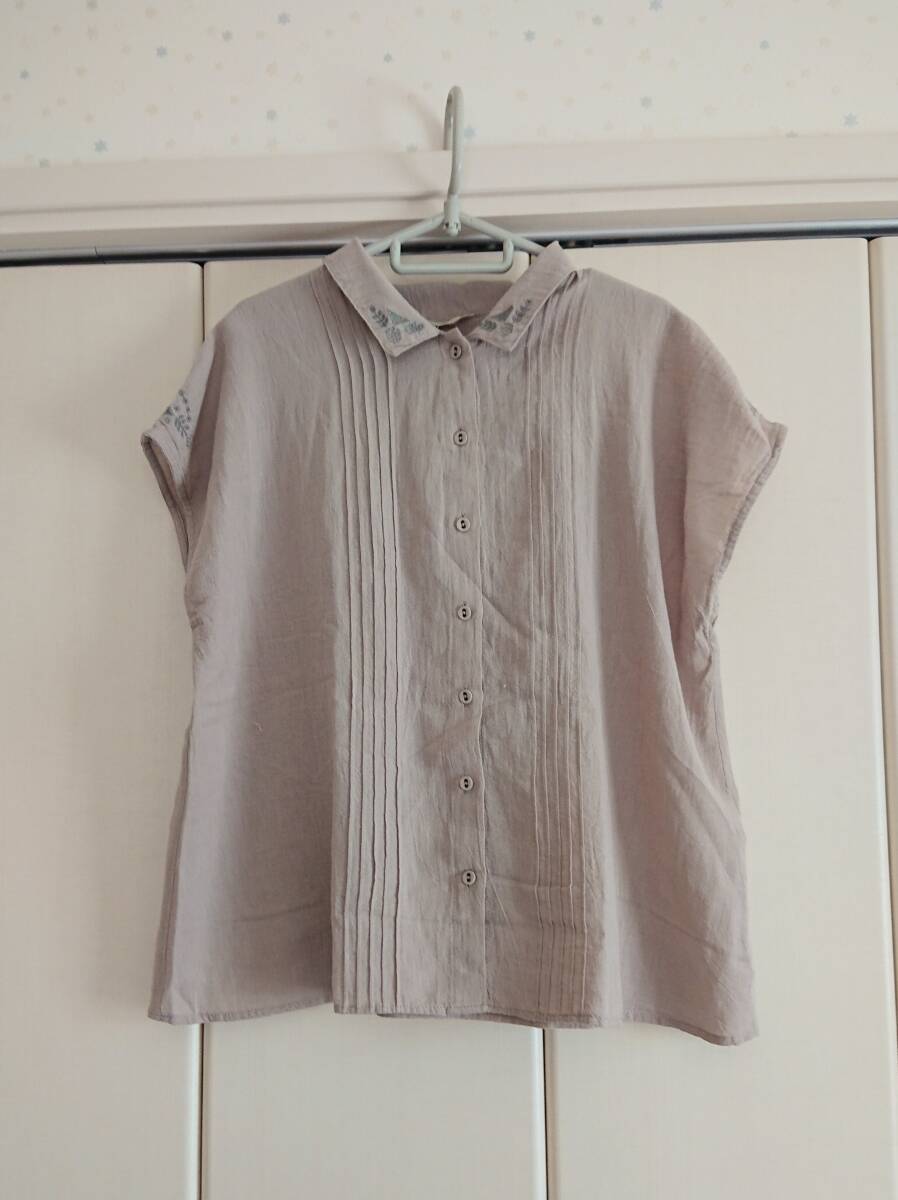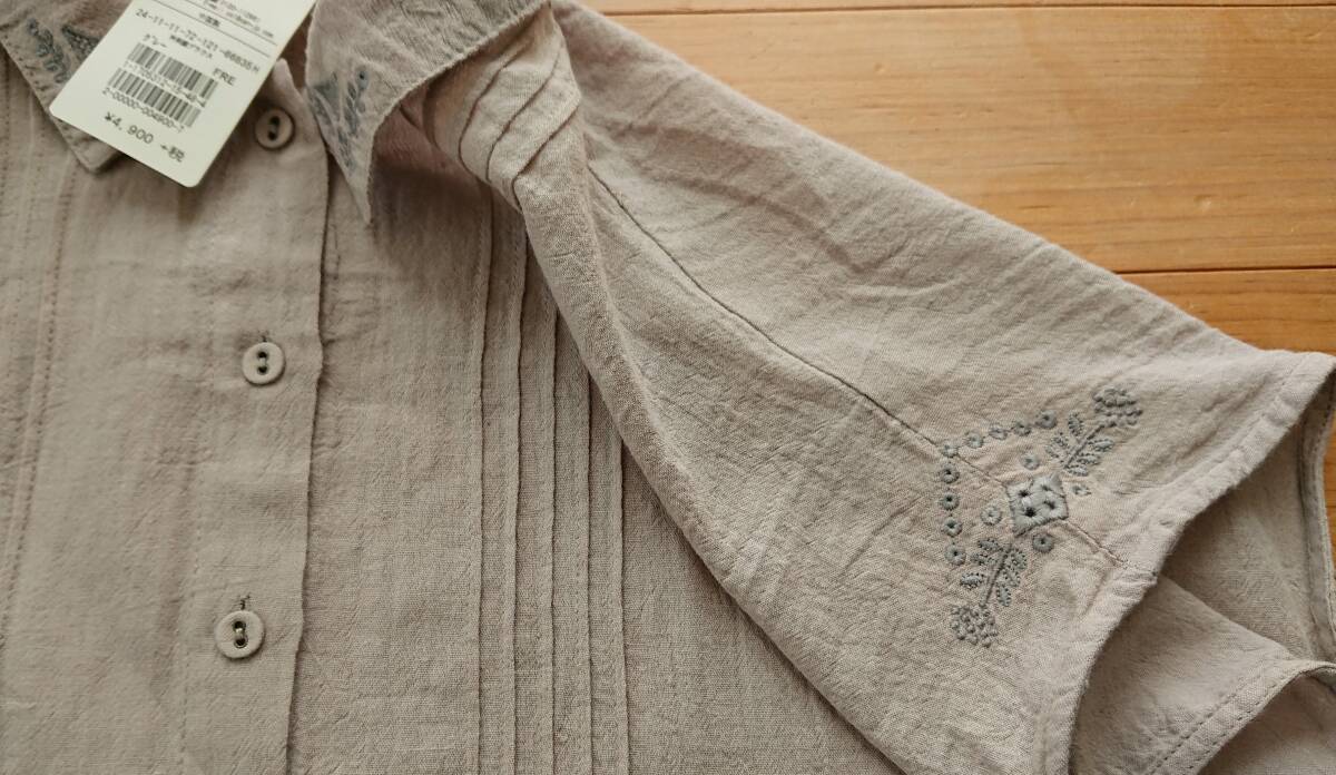 サマンサモスモス★綿麻・衿刺繍ブラウス・グレー★タグ付き