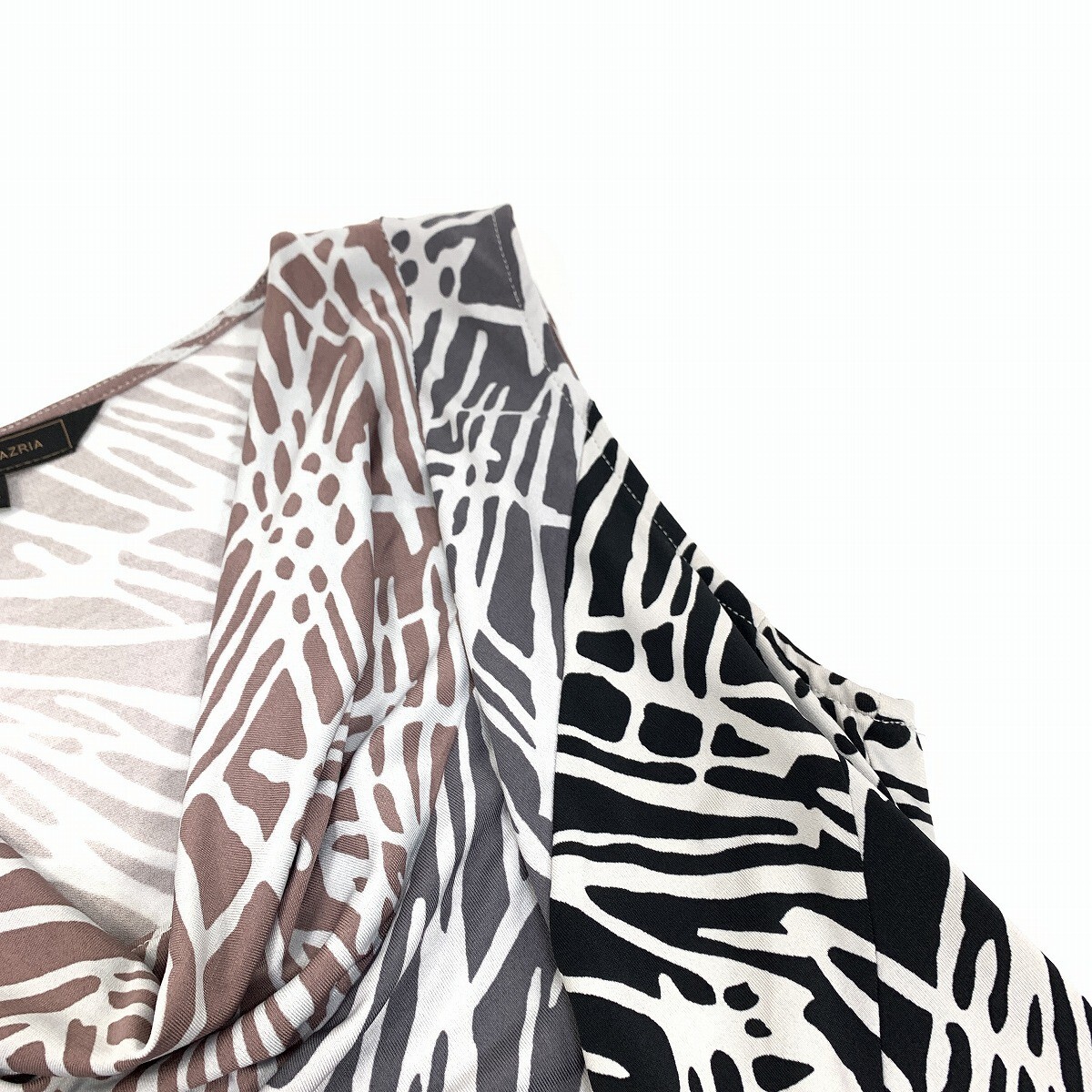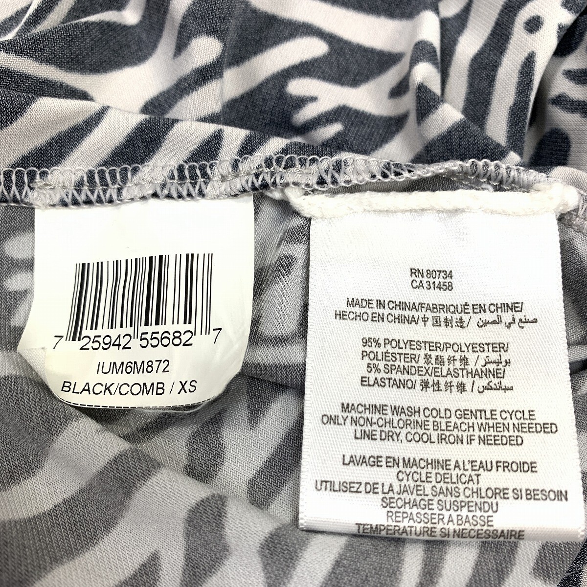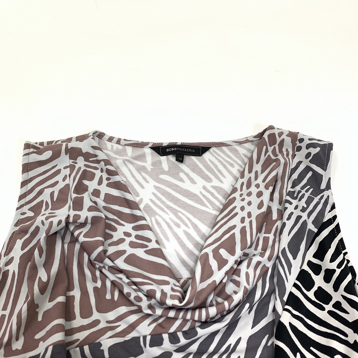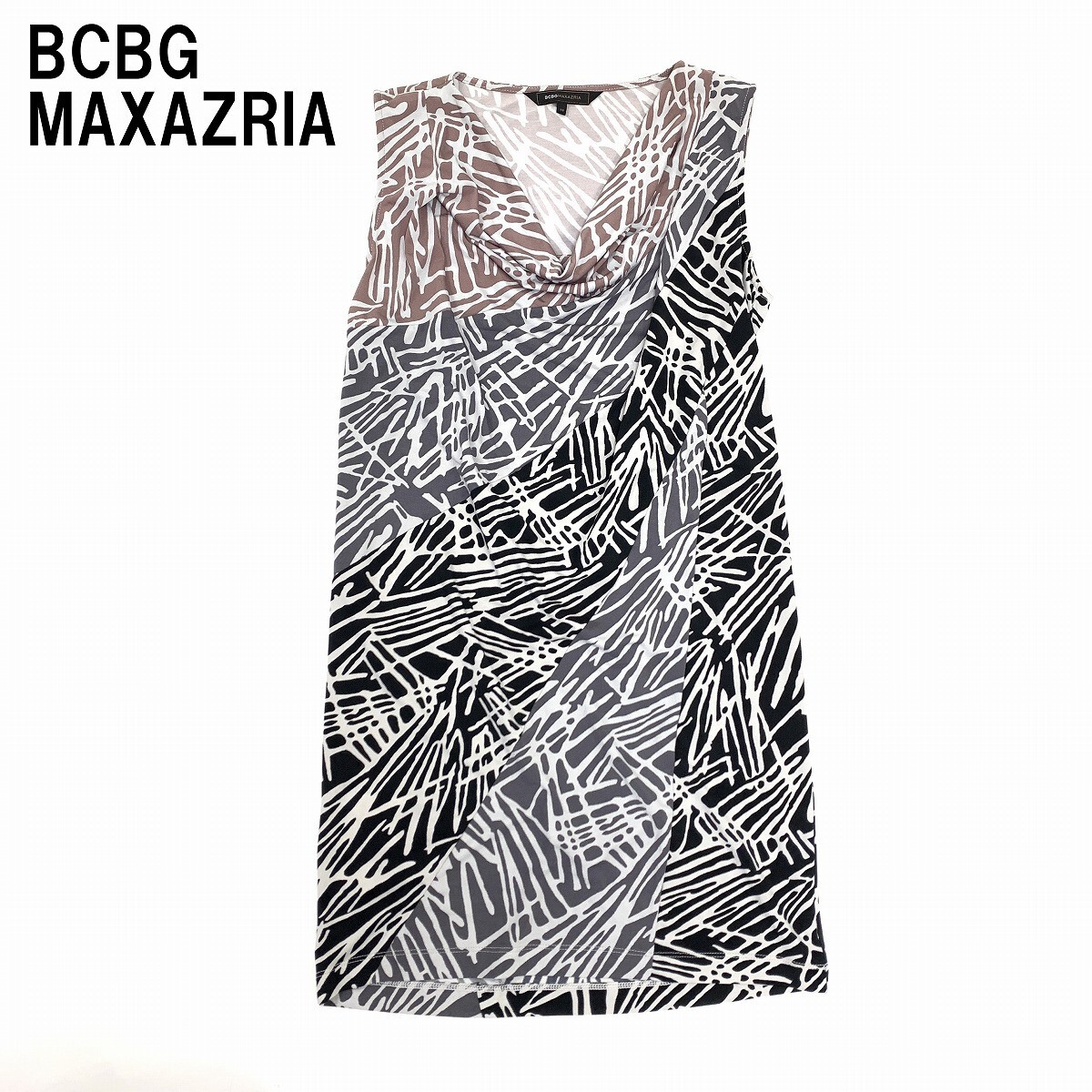 BCBG MAXAZRIA ビーシービージーマックスアズリア ひざ丈ワンピース ノースリーブ 総柄 ゼブラ柄 黒 ブラック 白 ホワイト XS YC769