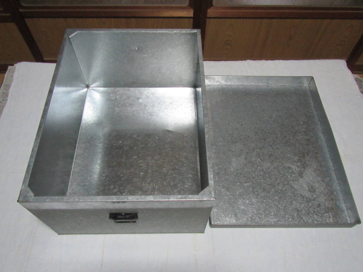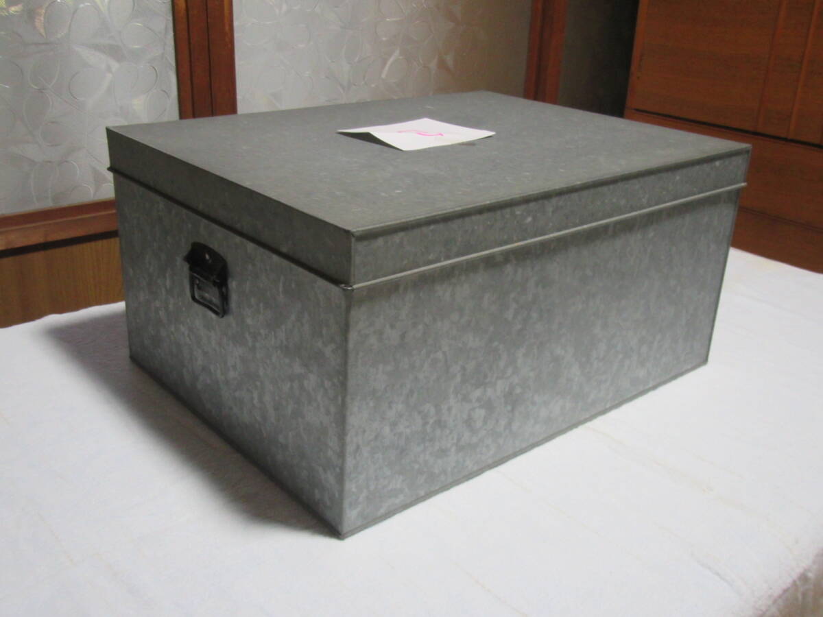【トタン衣装缶 B】ブリキ収納ケース 箱函 幅490×奥行580×高さ280cm 重さ3.0kg 送料込み 保存 防虫 和室 座敷 日本間 家族 思い出