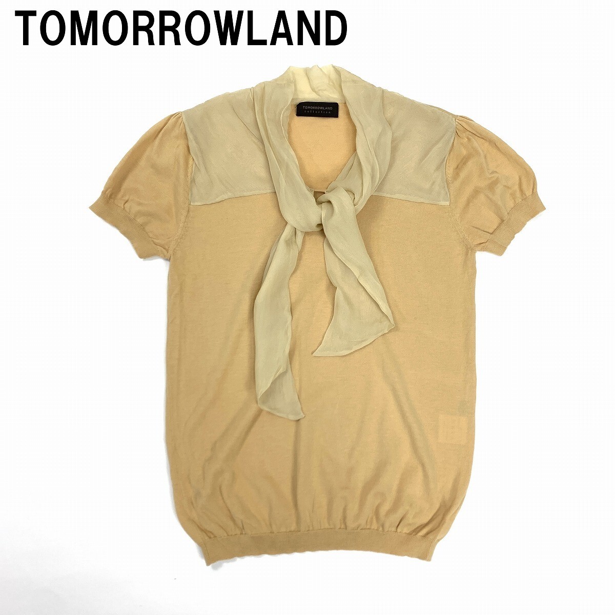 TOMORROWLAND トゥモローランド 半袖ニット セーター 綿 コットン ボウタイ シルク ベージュ系 38 YC796