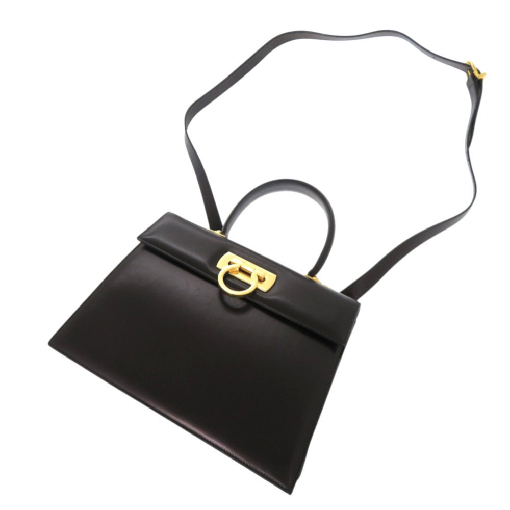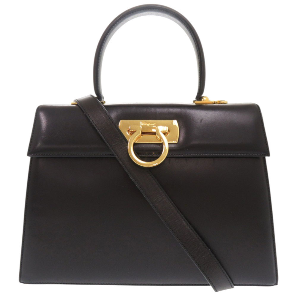 サルヴァトーレフェラガモ ガンチーニ 21 2181 レザー ブラック 2WAY ハンドバッグ ショルダーバッグ 黒 0754 Salvatore Ferragamo