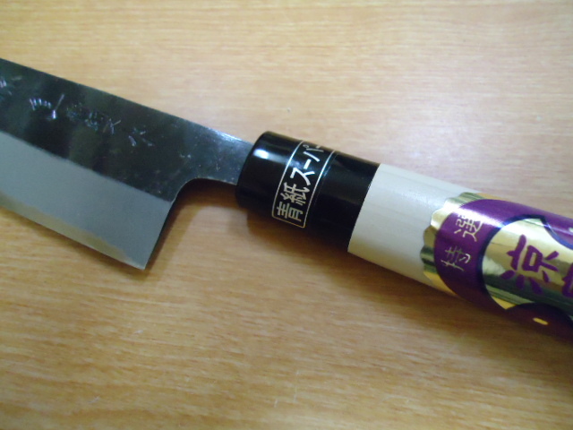 焼きいれは白紙よりさらに困難だが、硬度はHRC65以上と切れ味は最高クラス。