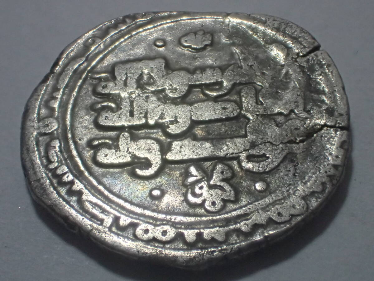 10-12世紀頃に現在のアフガニスタン、北インド等を支配したガズナ朝で発行されたディルハム銀貨です。