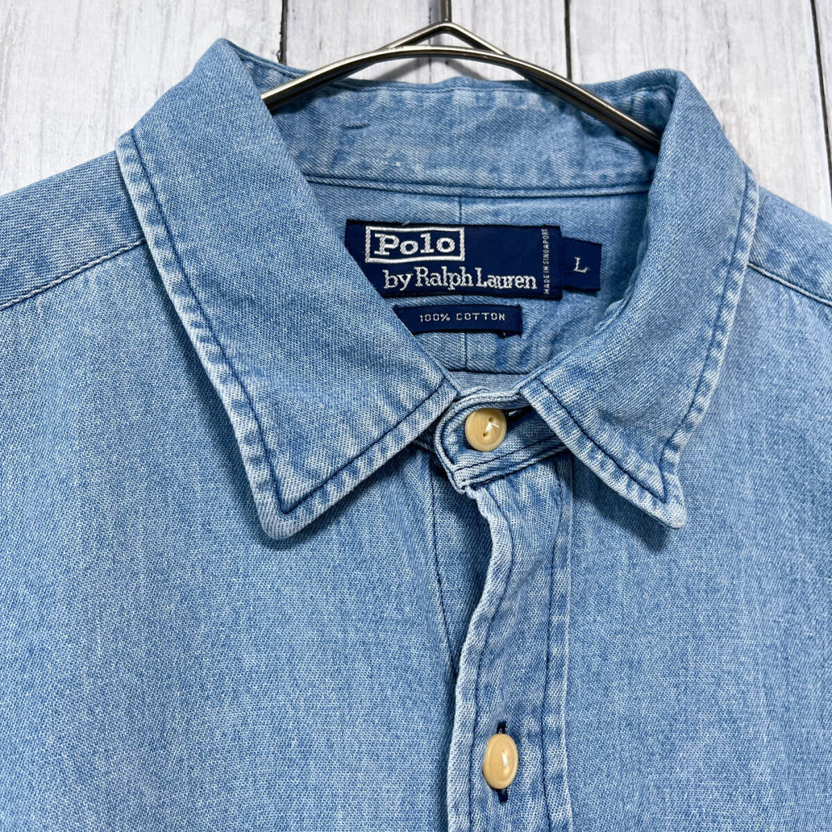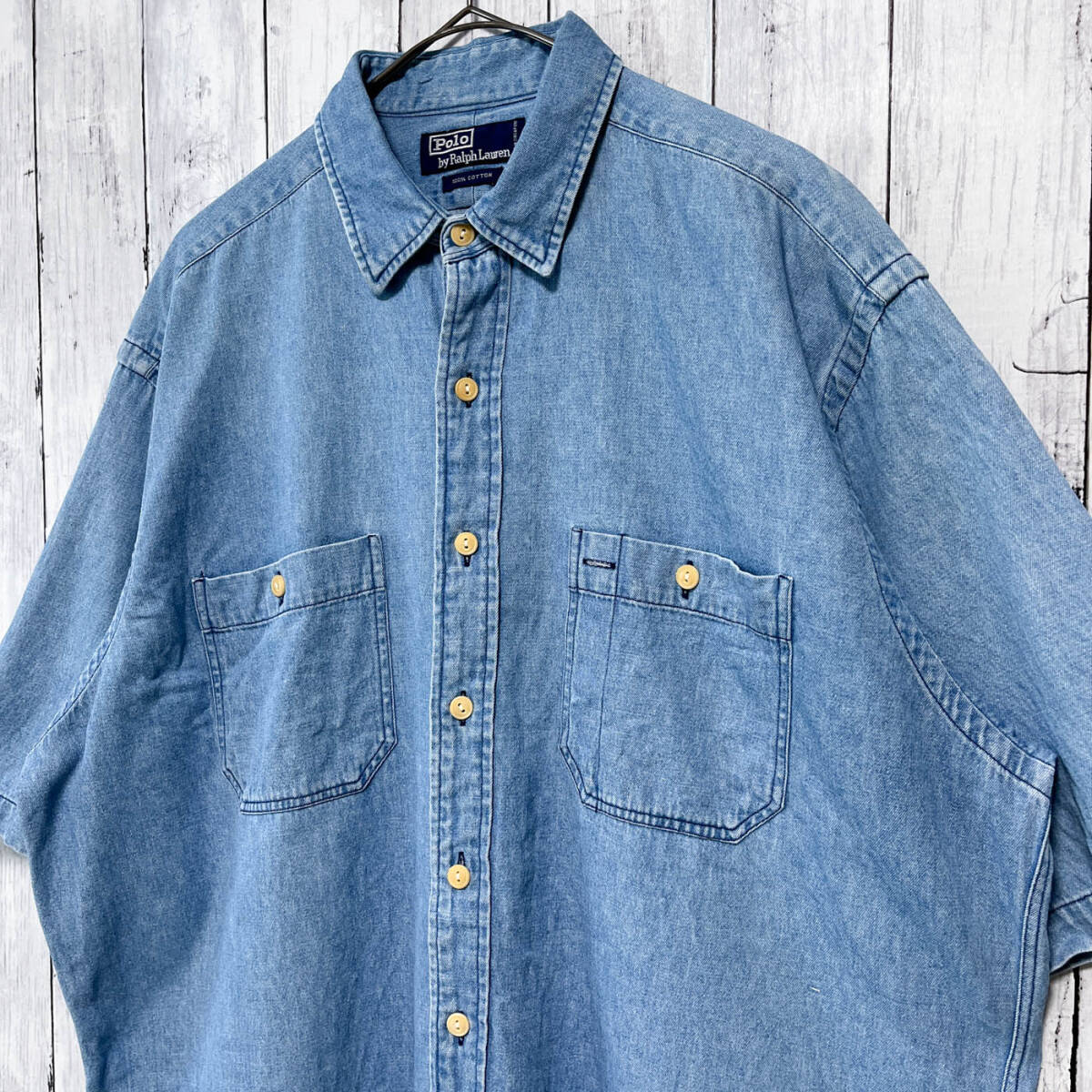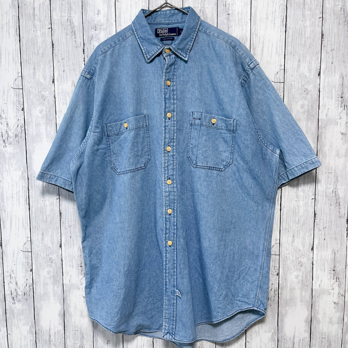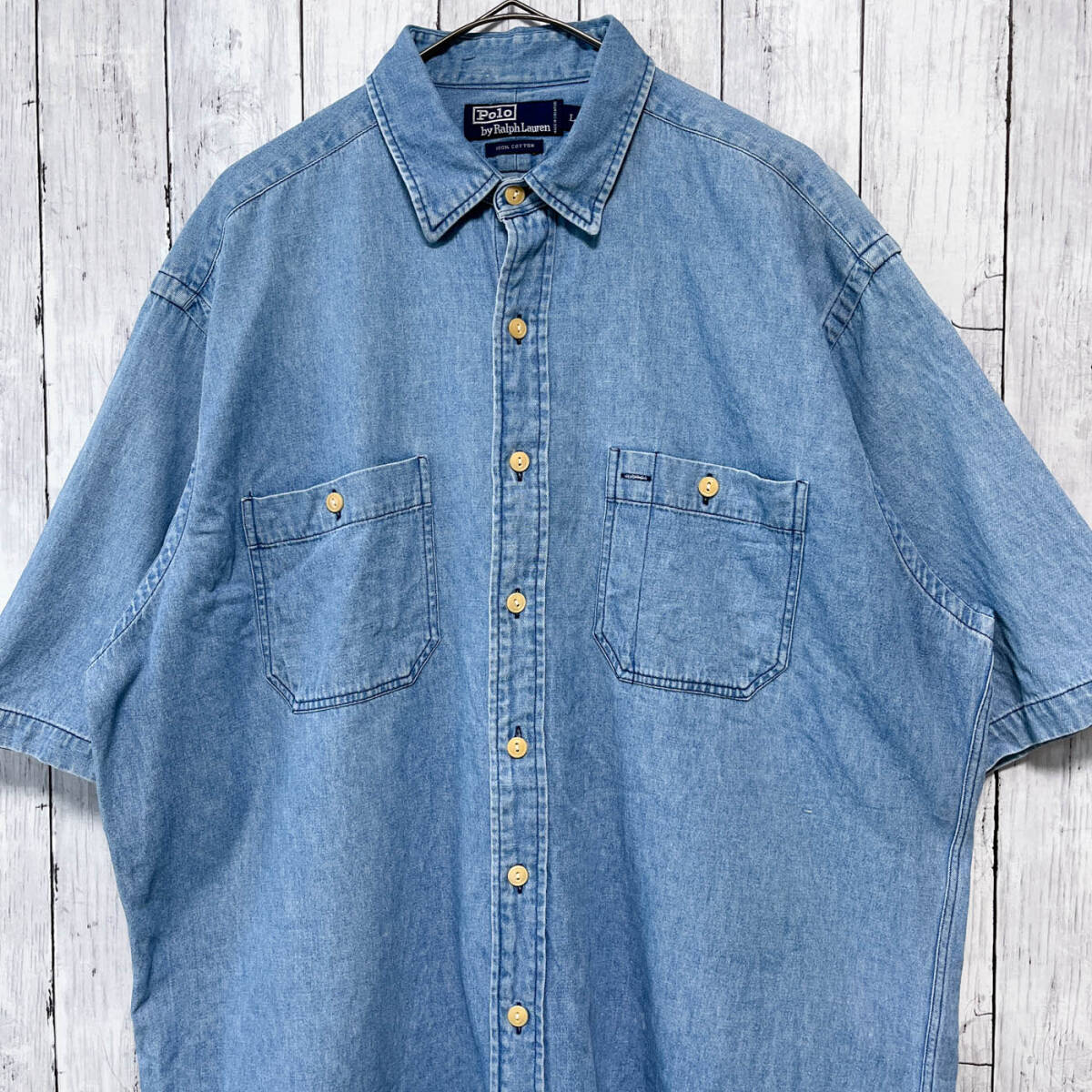 ラルフローレン Ralph Lauren デニムシャツ ワークシャツ 半袖シャツ メンズ コットン100% Lサイズ 5‐680