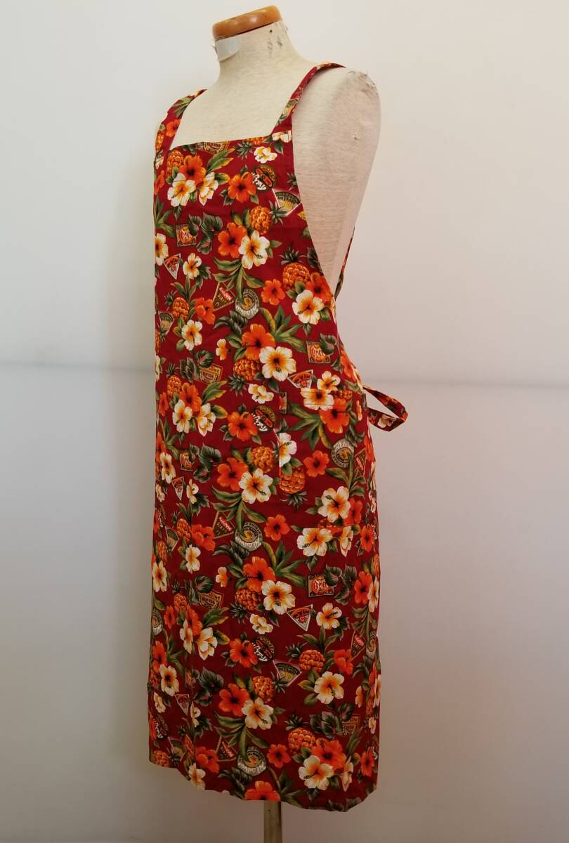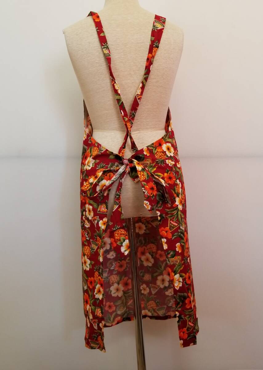 ①メーカー不明 エプロン たすき掛け レッド・ハイビスカス・パイナップル柄 サイズ不明