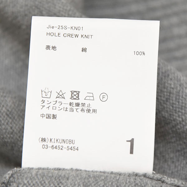 Jieda ジエダ 2025SS HOLE CREW KNIT ダメージ加工セーター ニット Jie-25S-KN01 8054000210824