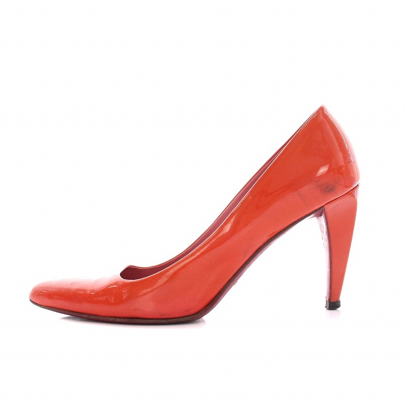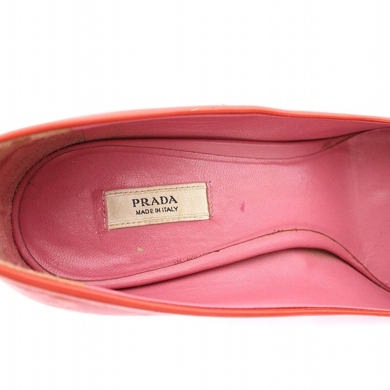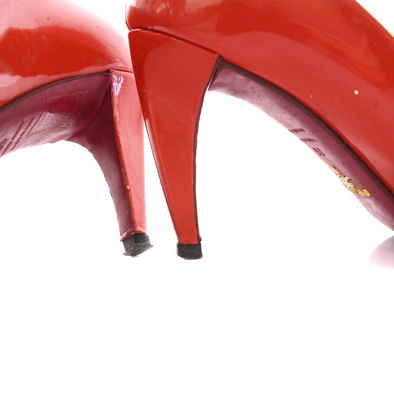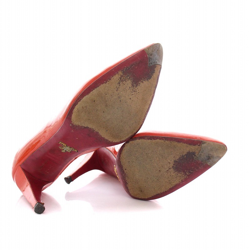 プラダ PRADA パンプス ハイヒール シューズ エナメル ポインテッドトゥ 35 朱色 レッド /YM レディース
