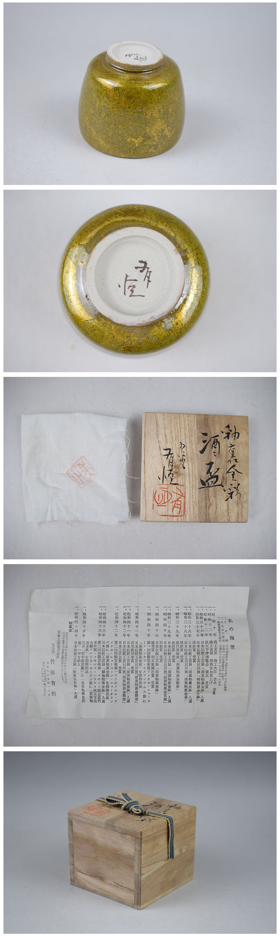【竹田有恒 釉裏金彩酒盃 九谷焼ぐい呑 酒器 共箱 真作保証】